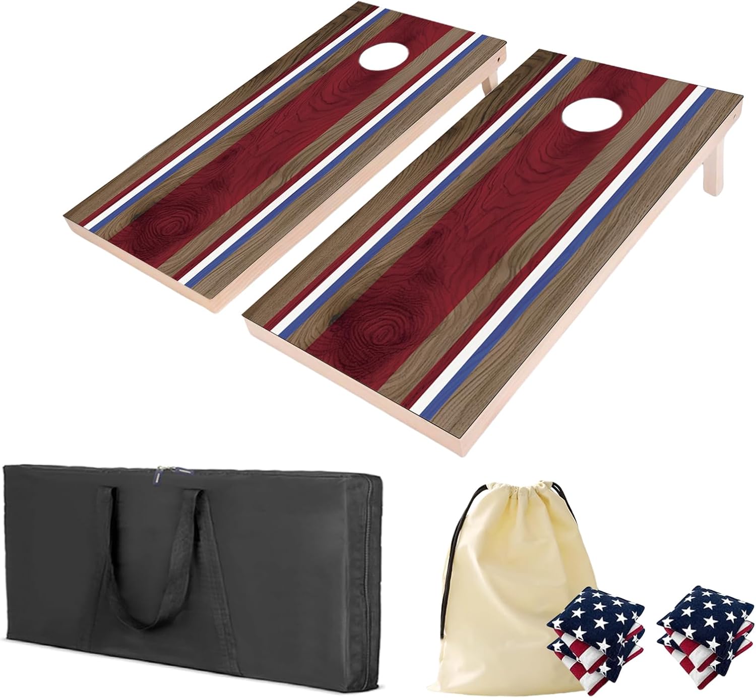 - Portability Cornhole Set-The regulation-size cornhole sets featuring a collapsible design with carrying case, and also include storage bags for the bean bags,making it convenient to transport and set up for outdoor activities like camping and tailgating