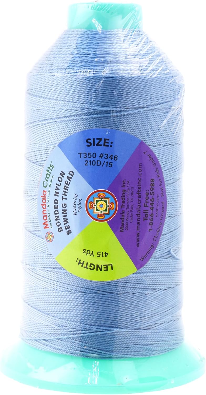 Mandala Crafts Bonded Nylon Thread Light Blue Heavy Duty Sewing Threads - 415 YDs Size 346 210D T350 Tex 350 Thread for Leather Jeans Weaving Outdoor Marine Upholstery Threads