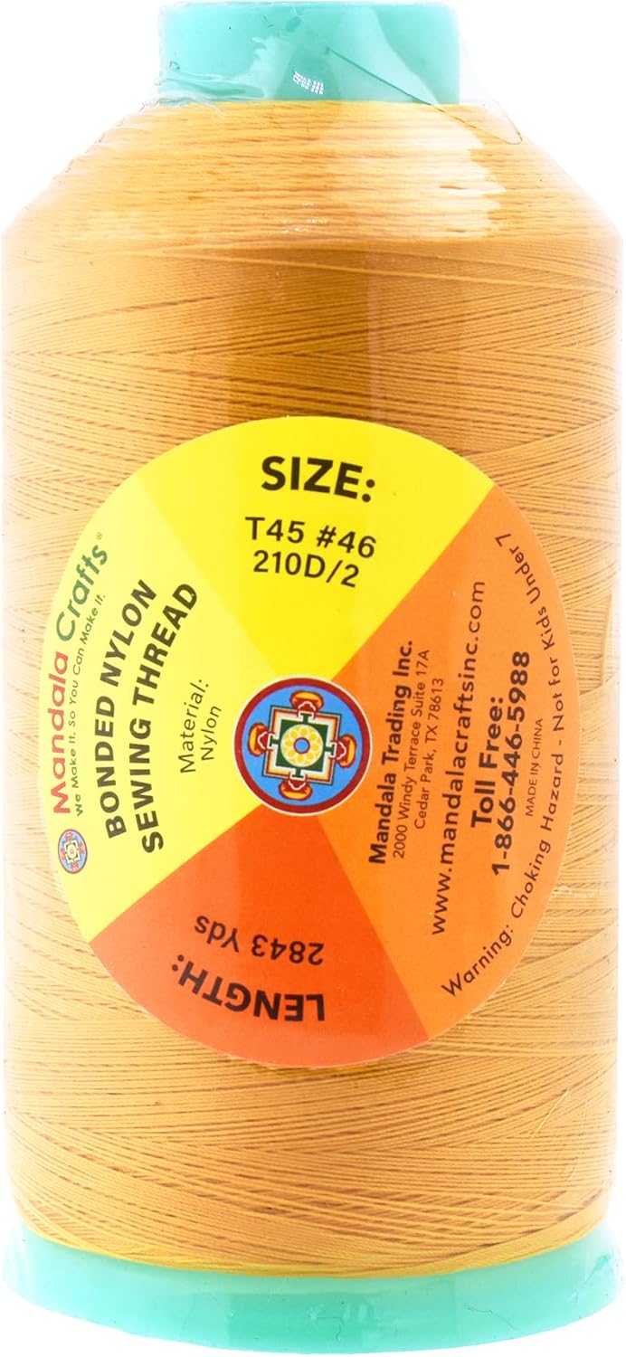 Mandala Crafts Bonded Nylon Thread Gold Heavy Duty Sewing Threads - 2843 YDs Size 46 210D T45 Tex 45 Thread for Leather Jeans Weaving Outdoor Marine Upholstery Threads