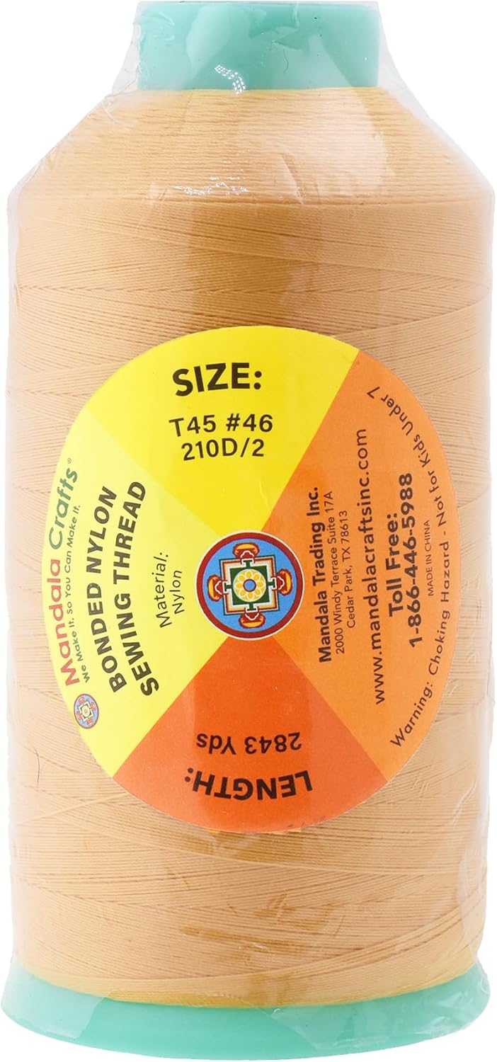 Mandala Crafts Bonded Nylon Thread Blonde Heavy Duty Sewing Threads - 2843 YDs Size 46 210D T45 Tex 45 Thread for Leather Jeans Weaving Outdoor Marine Upholstery Threads