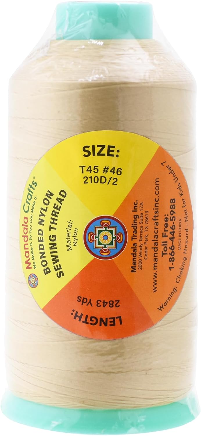 Mandala Crafts Bonded Nylon Thread Cream Heavy Duty Sewing Threads - 2843 YDs Size 46 210D T45 Tex 45 Thread for Leather Jeans Weaving Outdoor Marine Upholstery Threads