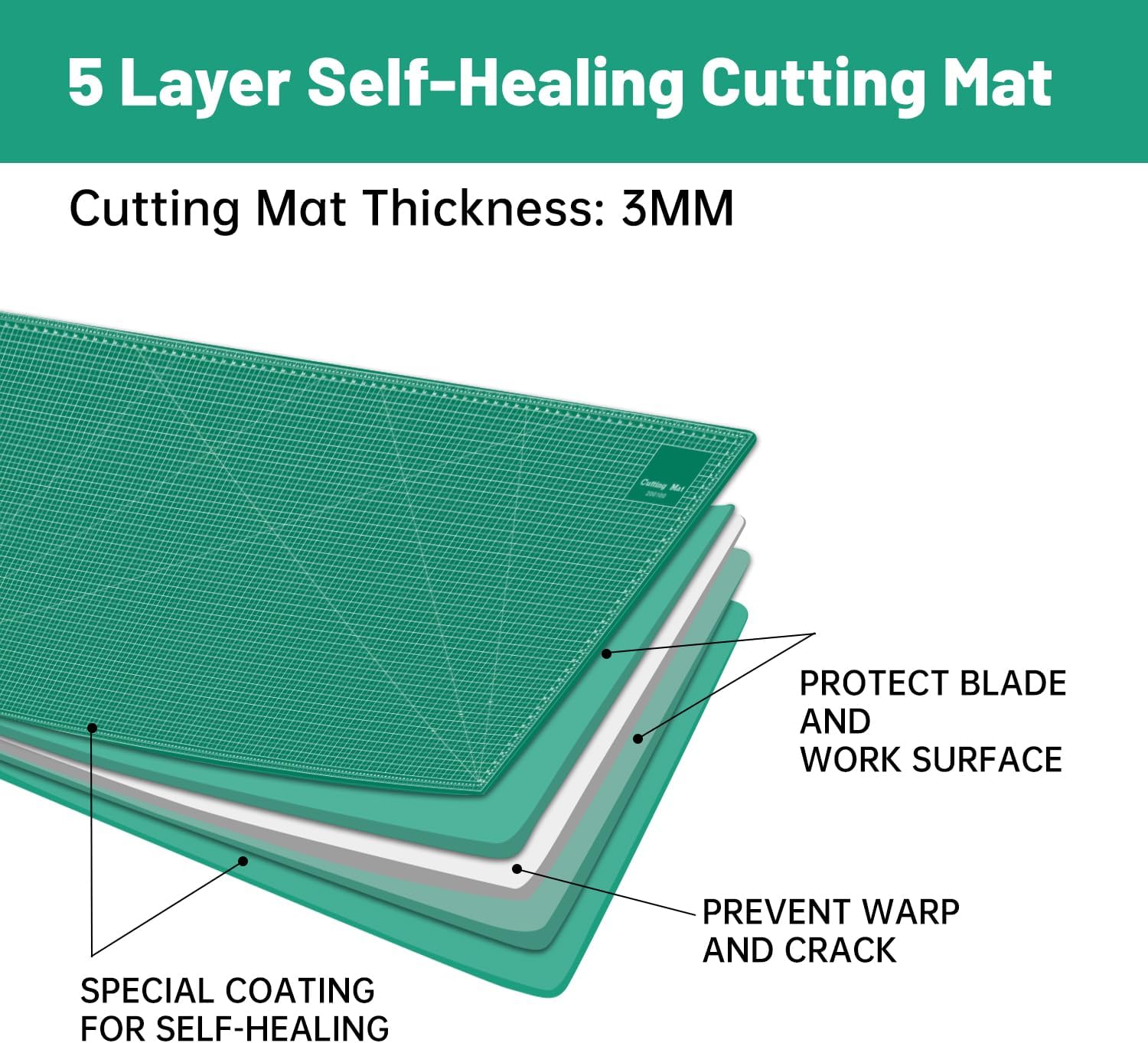 - SELF-HEALING DESIGN: Made of 5-layer PVC material, Unique self healing properties protects your craft knives, straight cutting blades, rotary cutter and work surface. Re-seals after every cut.