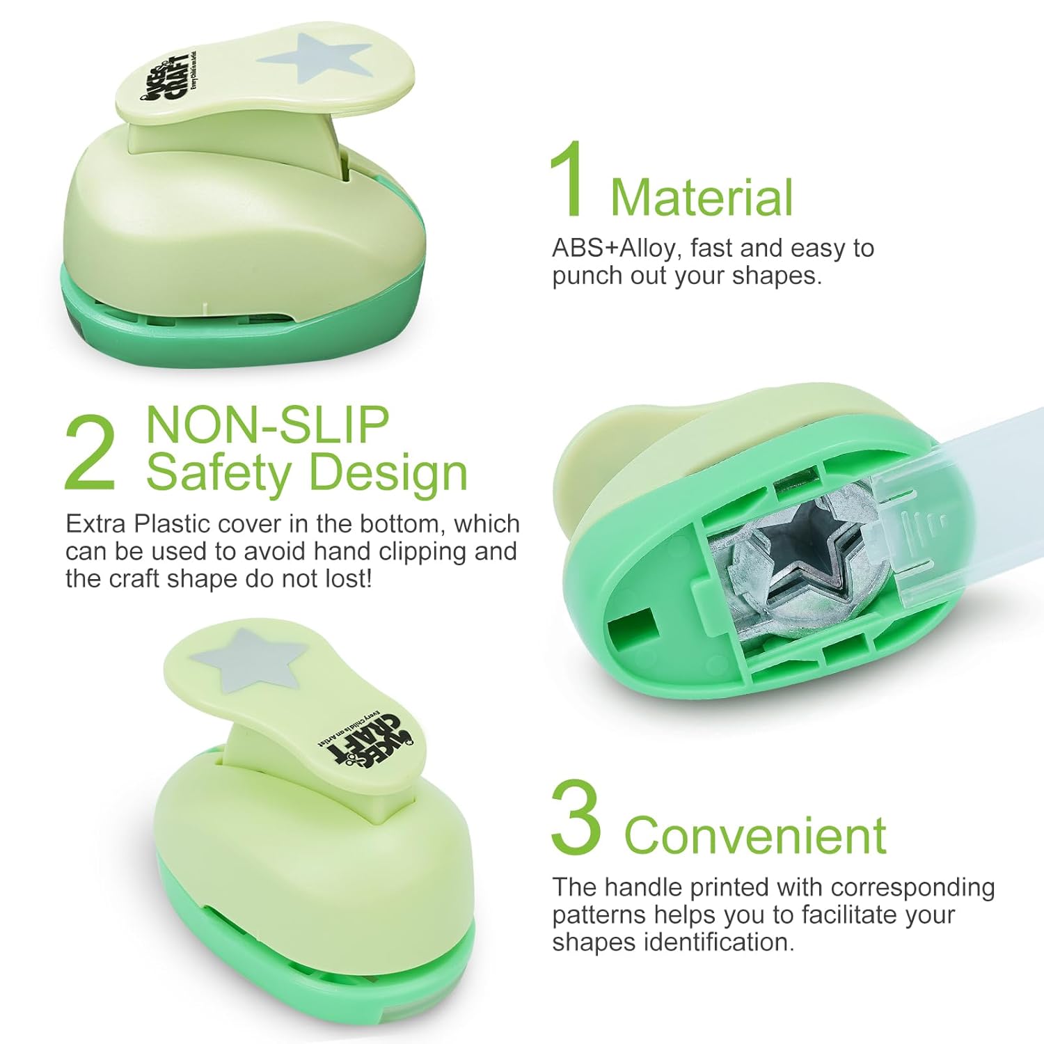 - CHILD-FRIENDLY PUNCH: Made from ZBS zinc alloy, star punch is specially equipped with a child safety lock to avoid hurting their fingers and is easy to store. Spring-operated design and bigger handle fit kids small hands. Great star punches for paper crafts excite children's curiosity, promote imagination, develop intelligence, and exercise the ability to use hands and brain