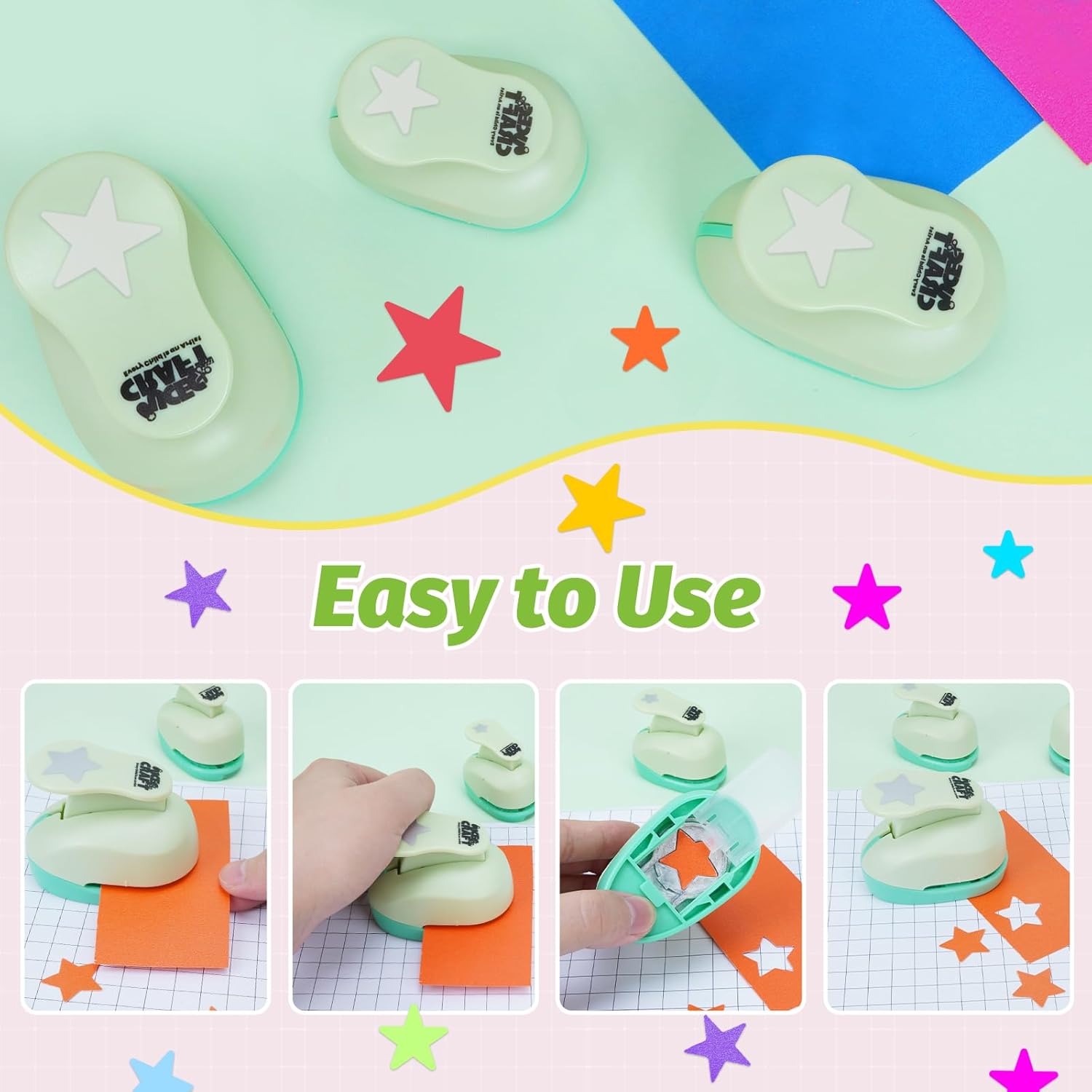 - SUITABLE FOR DIVERSE PAPER: Suitable for up to 500g paper, this star hole punch can be widely used for punching printer paper, cardboard, corrugated paper, kraft paper, sponge paper, PVC cards, foam, etc. If your paper is too thin, please use 2-3 layers. Cutting Sticky paper may make the star punches for paper crafts GET STUCK