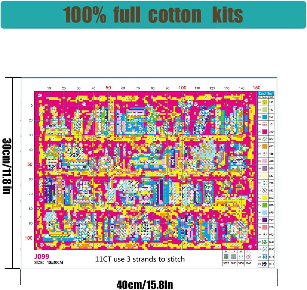 - Pre-printed Pattern Fabric:The Bookshelf cross stitch patterns is clearly printed with small squares which are coloured and marked with symbols. Each symbol corresponds to a cross-stitch thread color. The symbol is written on the chart, and the corresponding thread color is written below the chart.