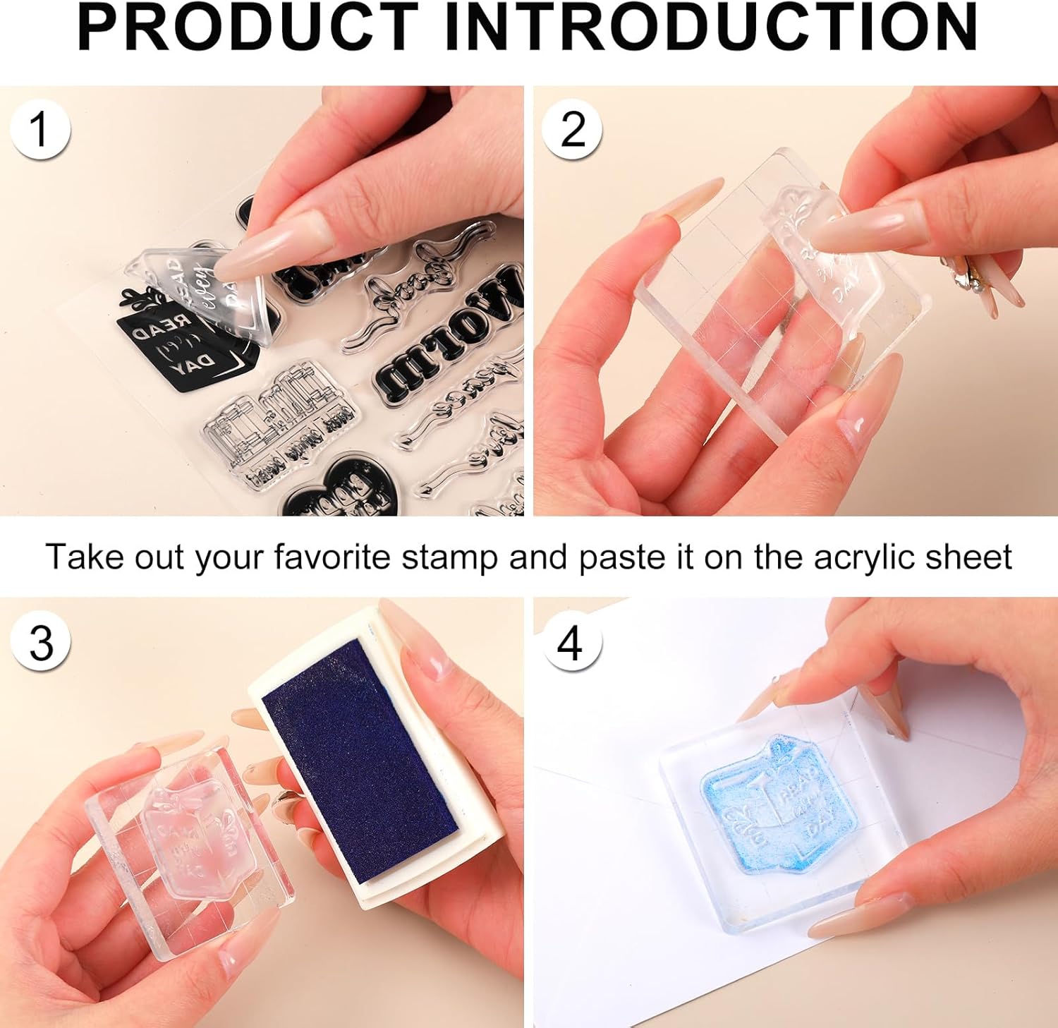- Easy to Use: Just tear off the stamp from the transparent paper and apply it on the acrylic block, then apply the ink on the stamp, put the pattern to be printed on the surface to be printed and press hard for a while, you can get clear and beautiful patterns on your items