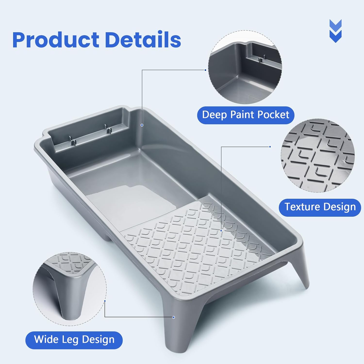 - Textured Paint Tray: The grey tray can be used with the lining, which is strong and not easy to damage, and is very suitable for some small projects to paint the scene. The depth of the paint roller tray can hold plenty of paints. It is very convenient for you to switch the paint color to your painting