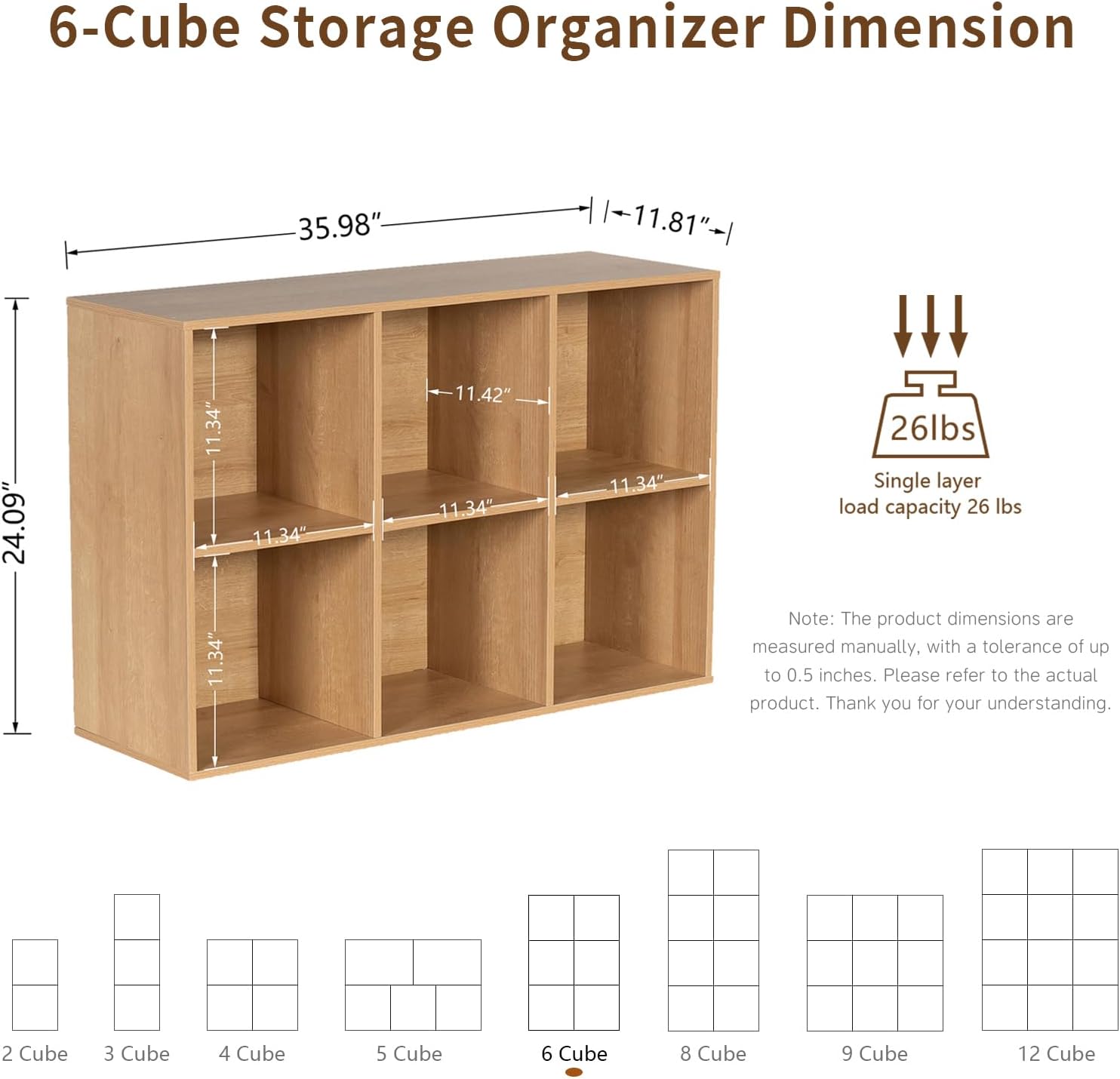 Wooden 6-Cube Storage Organizer with Closed Back Panel, 11in Cube Shelf Opening, Bookshelf, Display Shelf,Closet Cabinet for Home and Office,Natural Oak