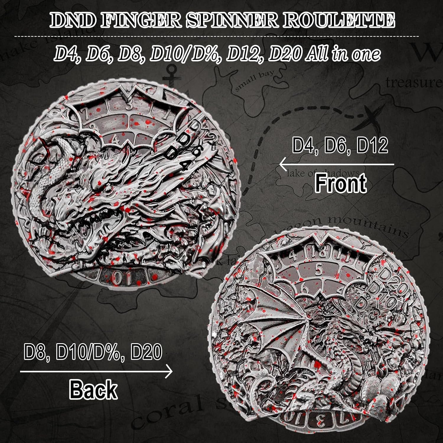 - All-in-One Spinner Dice Roulette: All-in-One Fingertip DND dice roller is the perfect companion for any tabletop role-playing game (RPG), whether it's Dungeons and Dragons, Pathfinder, or others. This unique D and D dice integrates d4, d6, d8, d10, d10%, d12, and d20, allowing you to make swift decisions in any scenario that requires random outcomes, from combat scenes to skill checks, providing a smooth gameplay experience.