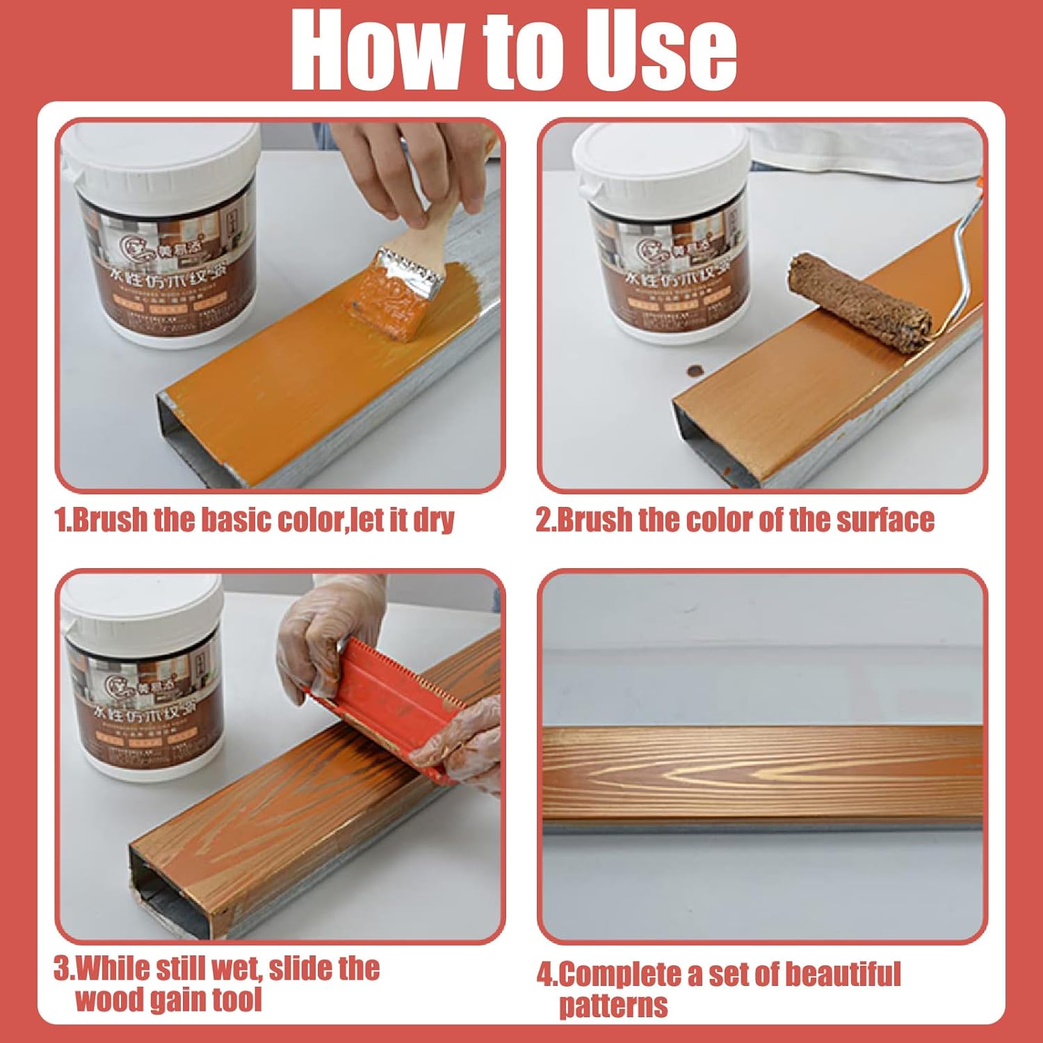 - EASY of USE: Brush on the basic color first and let it dry; then brush on the surface color, while it is still wet, slide it along the wood grain painting tool to get a simulated natural wood grain pattern. It is washable and reusable, just wash with soap and water
