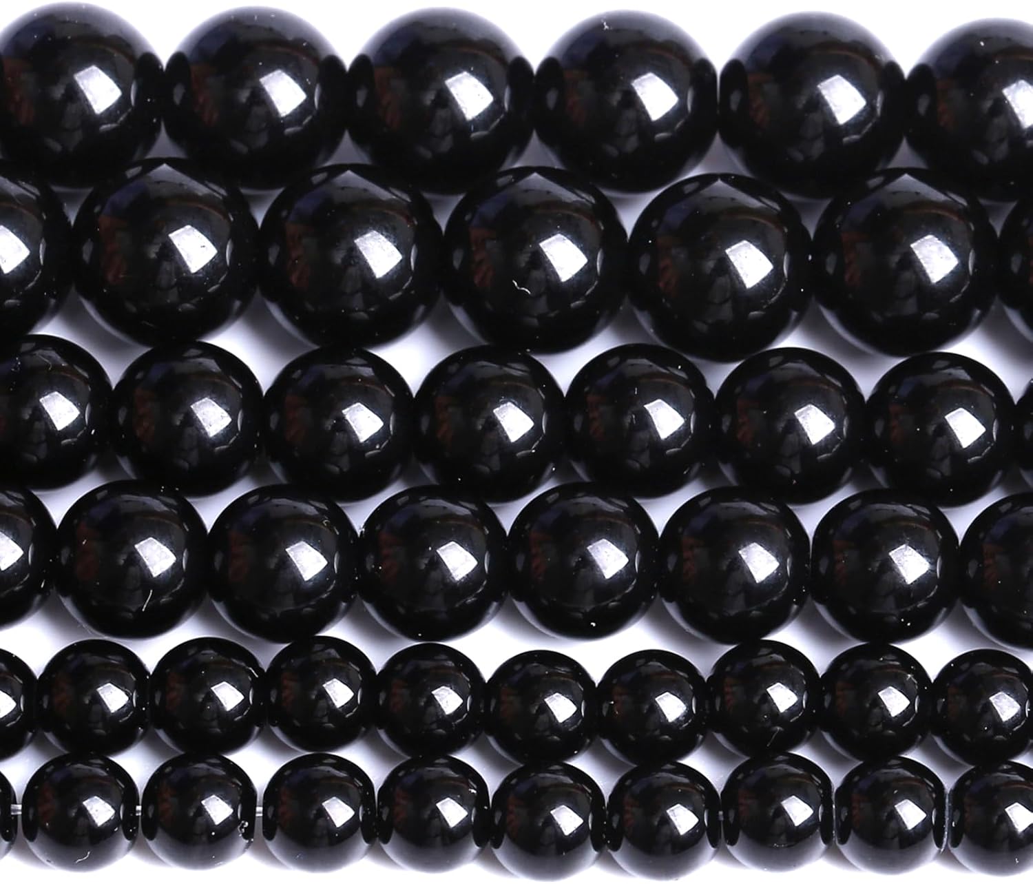 - SIZE: 4 6 8 10 12mm ,hole diameter is about 0.8-1.2mm, and the larger the beads, the larger the hole diameter.Number of different sizes:2 Strand 32",About 4MM/176PCS, 6MM/120PCS, 8MM/90PCS, 10MM/72PCS,12MM/32PCS