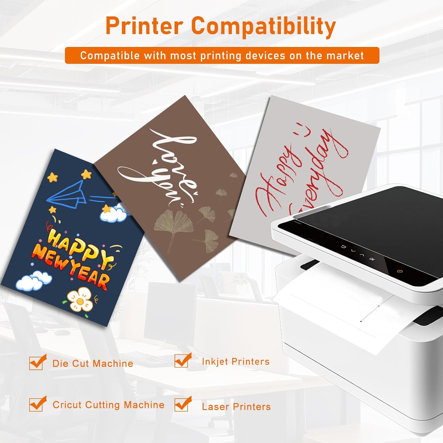 - ▶Printer Compatibility:our thick printer paper card stock is compatible with most types of laser printers, inkjet, die-cutting machines, and cricut cutting machines. Please ensure that your printer can print on 200gsm before ordering