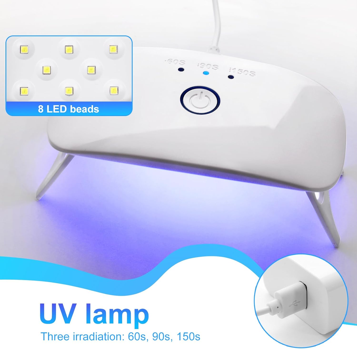 - 💎【Professional and Convenient】: Portable mini uv light for resin adopts higher energy lamp beads, 8 UV lamp beads design, power up to 12w, 1-3 minutes to cure. Supplied with data cable, designed with usb type-c interface.