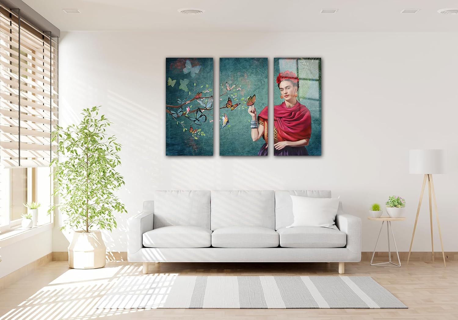SpiritualHands Frida Kahlo Glasss Wall Art Print, Home Decor Glass Wall Art Artwork for Living Room, Pictures for Bedroom, Hanging Painting Tempered Glass Art