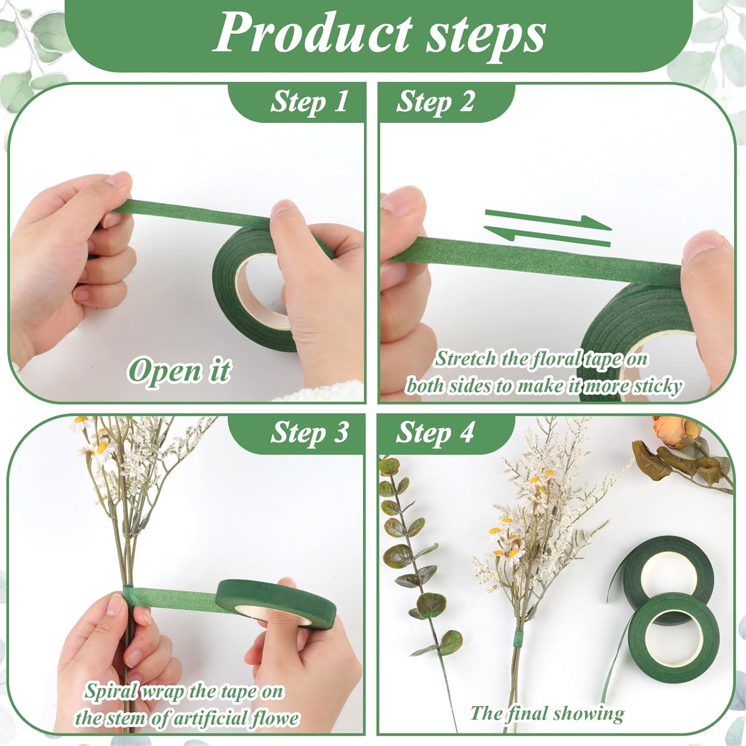 - Premium Material: Our green floral tape is made of sticky crepe paper, strong and flexible, easy to tear and cut, not easy to fade, to ensure ideal bouquet packaging