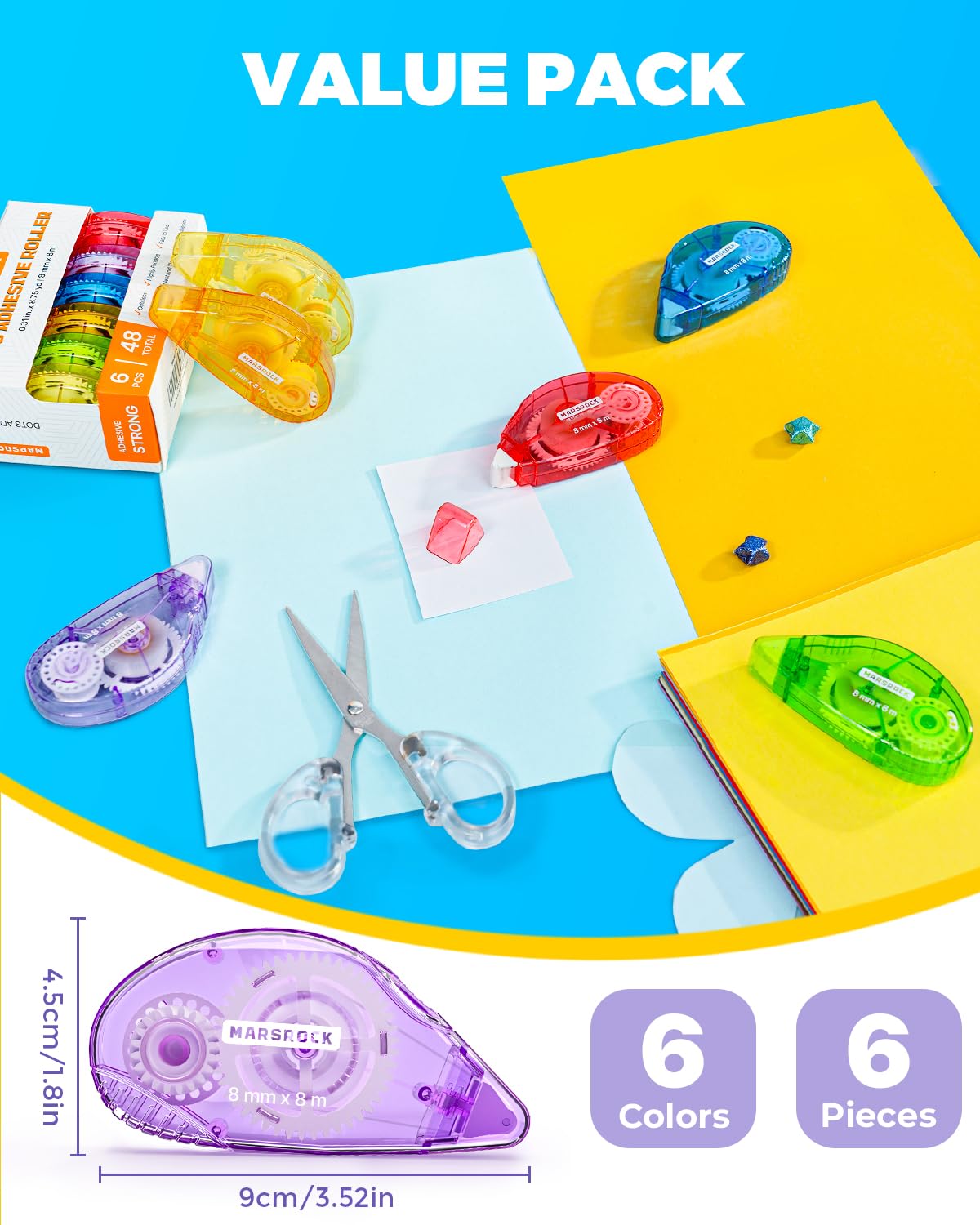 - Quick-Drying & Mess-Free: Compared to tearing double-sided tape, liquid glue, or glue sticks, Marsorck scrapbook tape keeps things clean and mess-free. It won’t wrinkle or damage paper, dries quickly, and helps you finish craft projects fast. It leaves no residue, so it’s neat and easy to use. Tips: It has a protective tip cover that prevents your bag from sticking to the adhesive