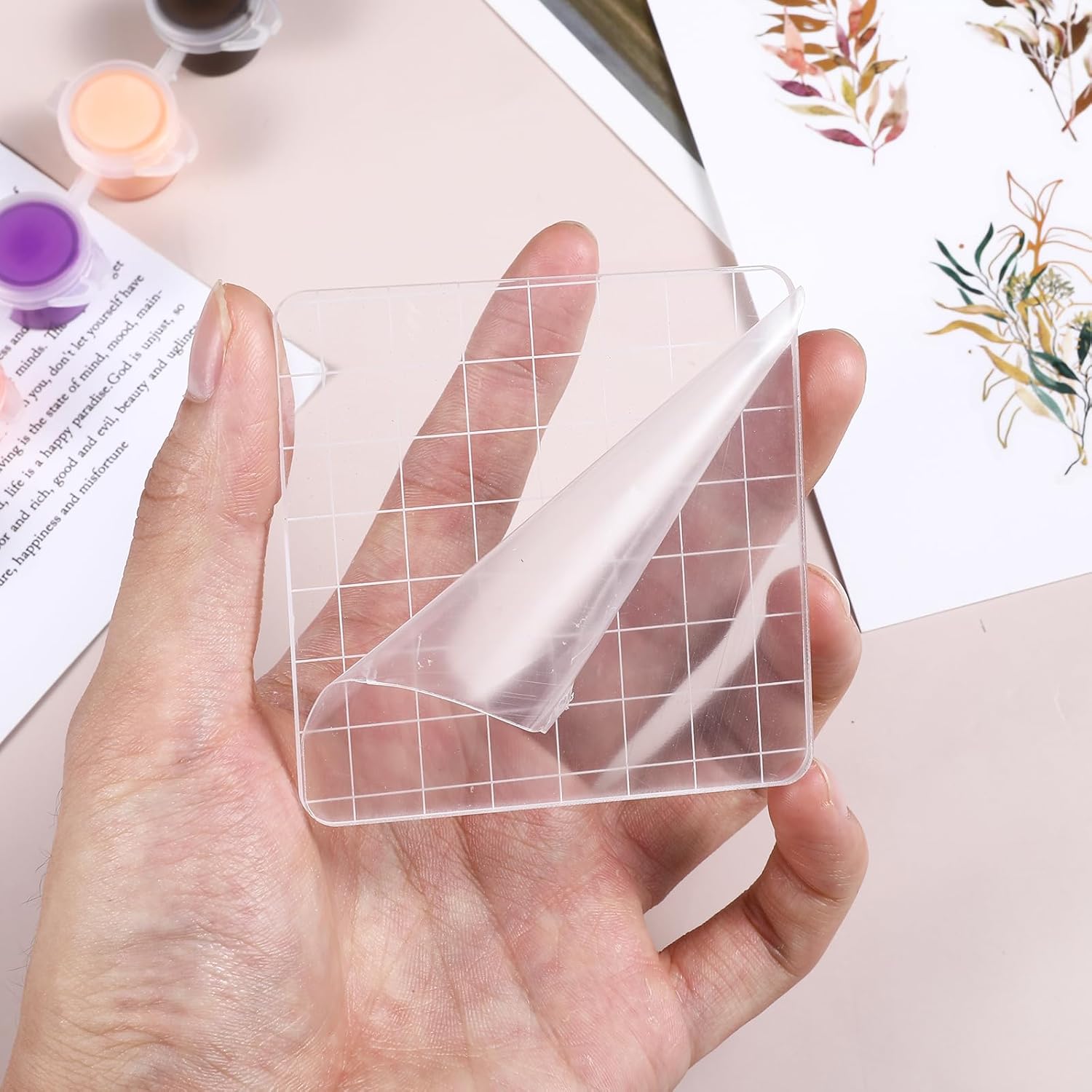 6PCS Acrylic Stamp Block with Grid Lines, Clear Stamping Blocks Tool Decorative Stamp Blocks Square Display Block Set Props for DIY Crafts Scrapbooking Card Making