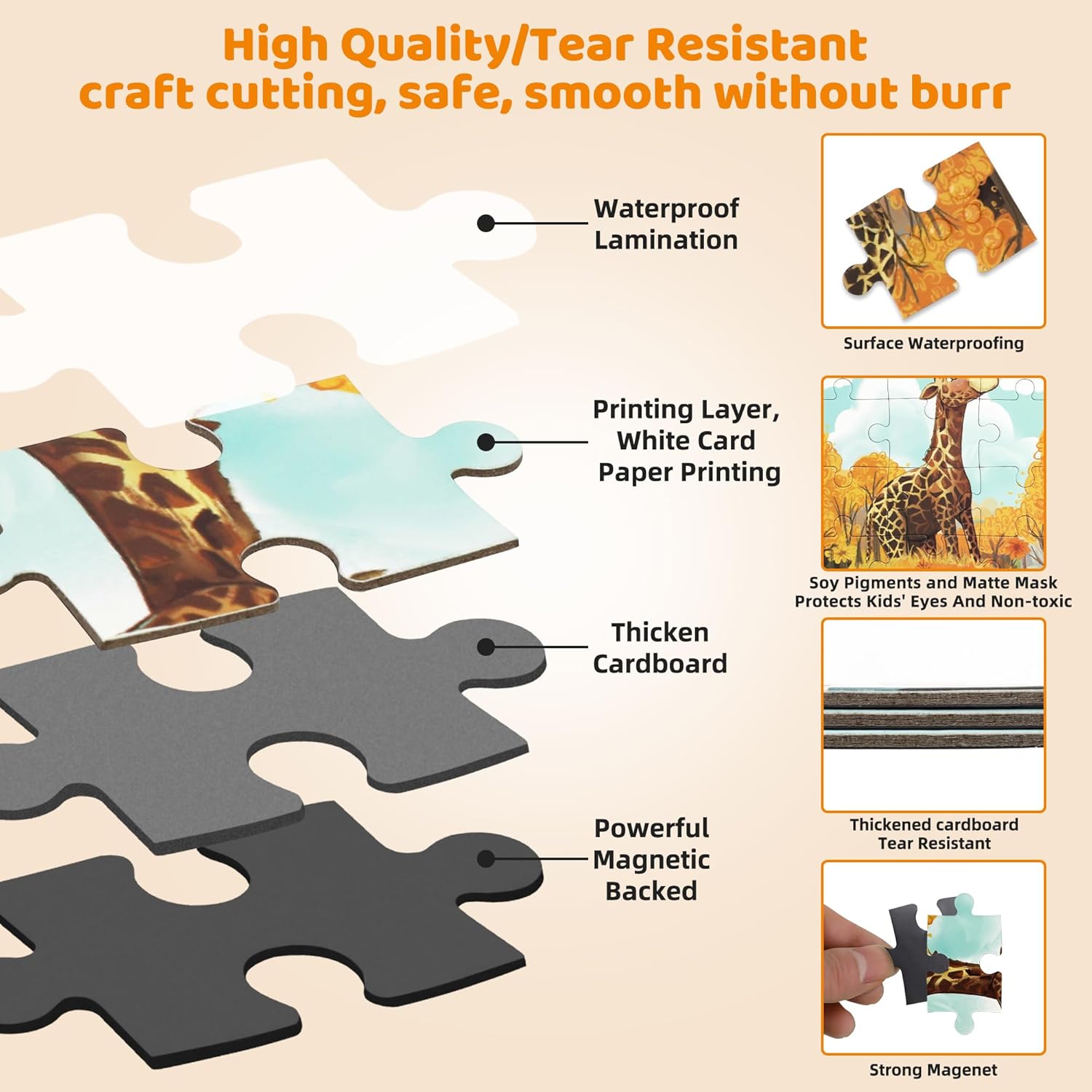 - Safe & High-Quality Toddler Puzzles | Travel Toys for Kids:Crafted with child-safe, FSC-certified thick cardboard and rounded edges. The strong soft magnets securely hold each piece in place, making these durable puzzles ideal for travel. A perfect car or airplane activity toy for kids.Completed jigsaw puzzles measure 7.1'' x 7.1'' each.
