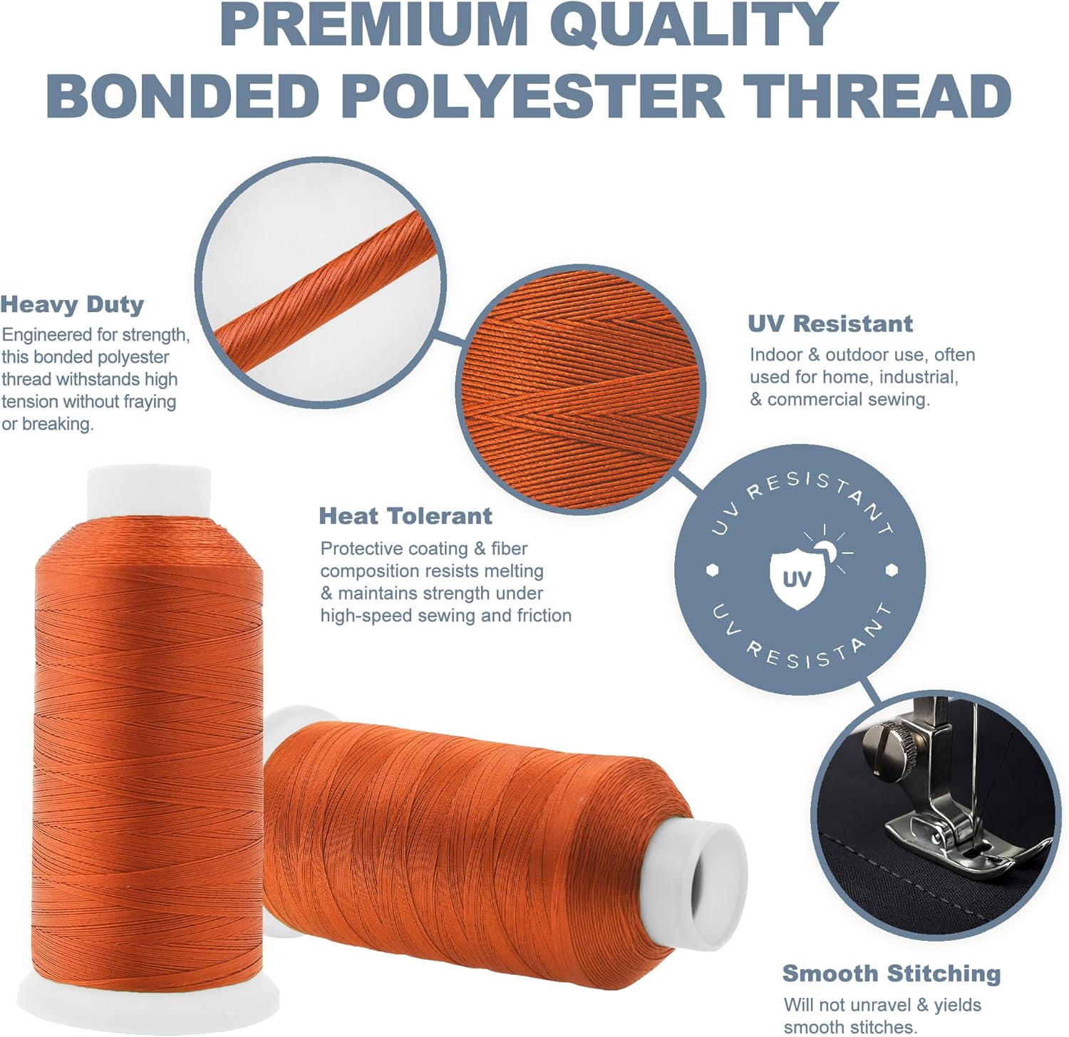 - Heavy Duty Sewing Threads: The heavy duty polyester thread has high heat & abrasion tolerance, and serves as great leather thread, outdoor thread, marine thread, weave thread, hair thread, carpet thread, canvas thread, & jeans thread.