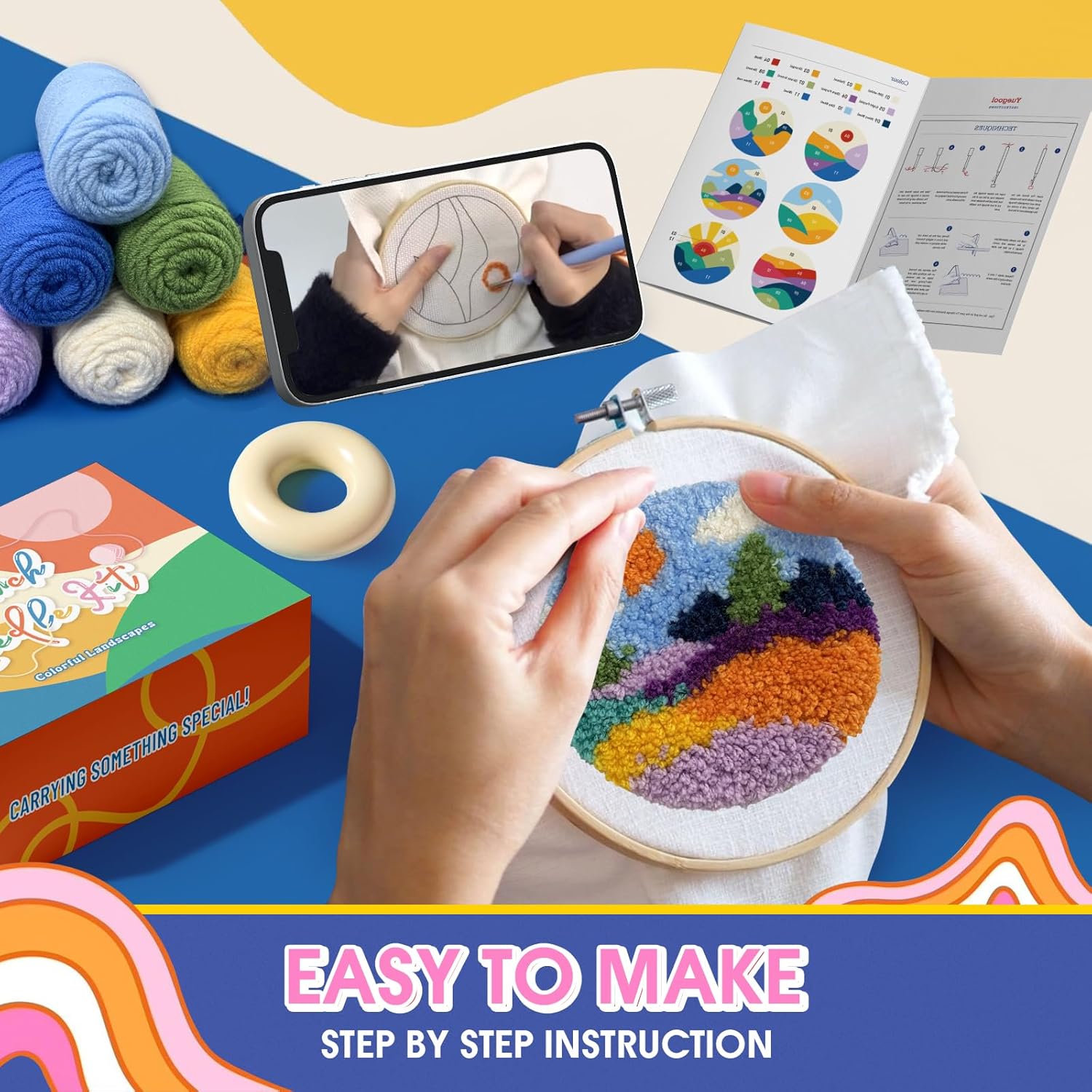 - Suitable for Beginners and Professionals: This DIY kit is perfect for kids or adults, offering both detailed instructions and step-by-step videos to ensure a hassle-free experience. We provide enough yarn so beginners can make mistakes without worry. Never tried punch needle embroidery before? No problem! Order this kit and start your crafting journey