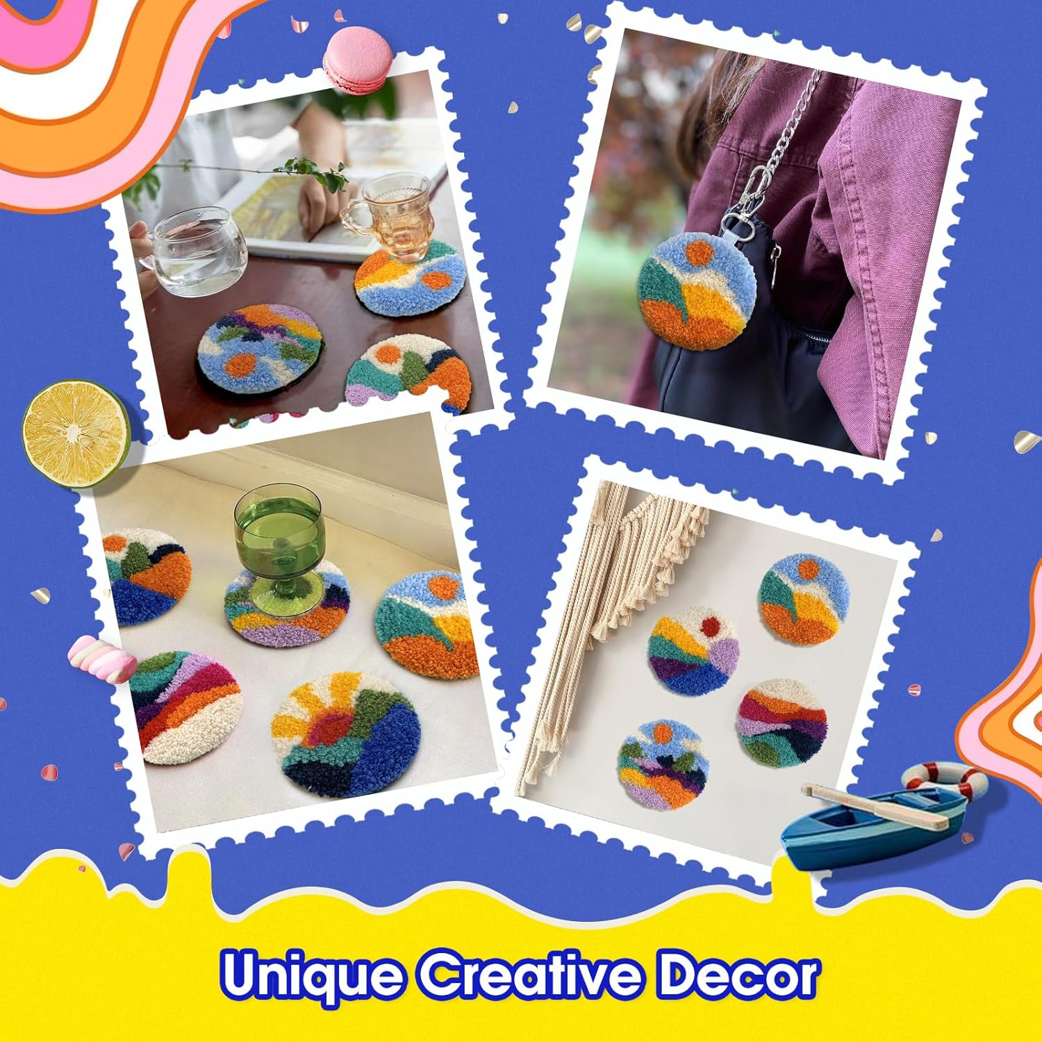 - Functional Coasters and Stylish Decor: The Colorful Landscapes Set features six vibrant, nature-inspired designs, allowing you to create functional coasters that also serve as beautiful decorative pieces. Use them as practical cup holders or display them as unique accents on walls or shelves in your living room, office, or kitchen. Add your own DIY touches to bring a calming, nature-infused atmosphere to your space, creating a peaceful and refreshing environment.