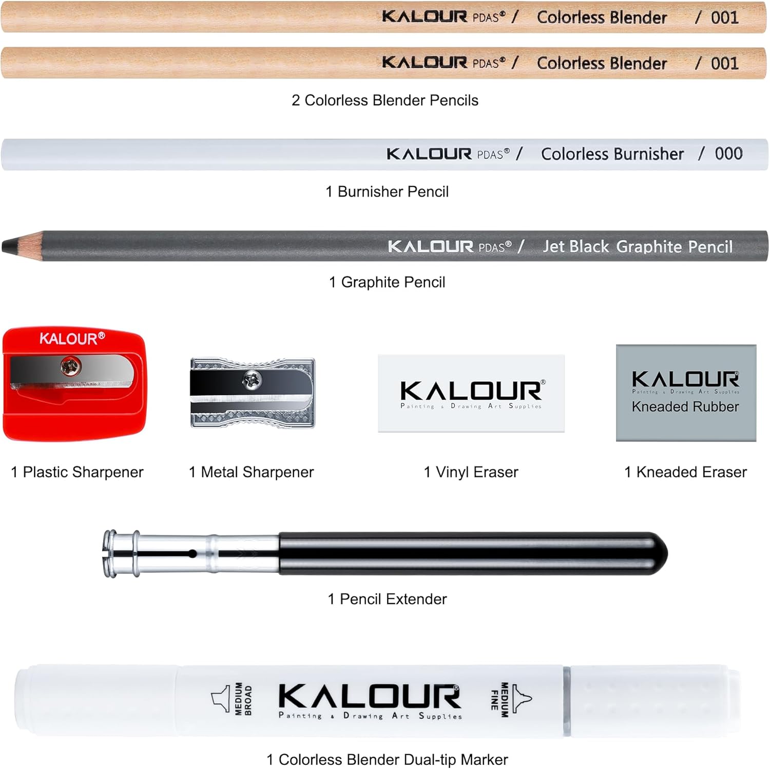 KALOUR Colored Pencil Accessory Kit,with Blenders,Erasers and Sharpener.perfect for Blending Softening Edges,ideal for Coloring Book,Art Supplies for Artists Beginners