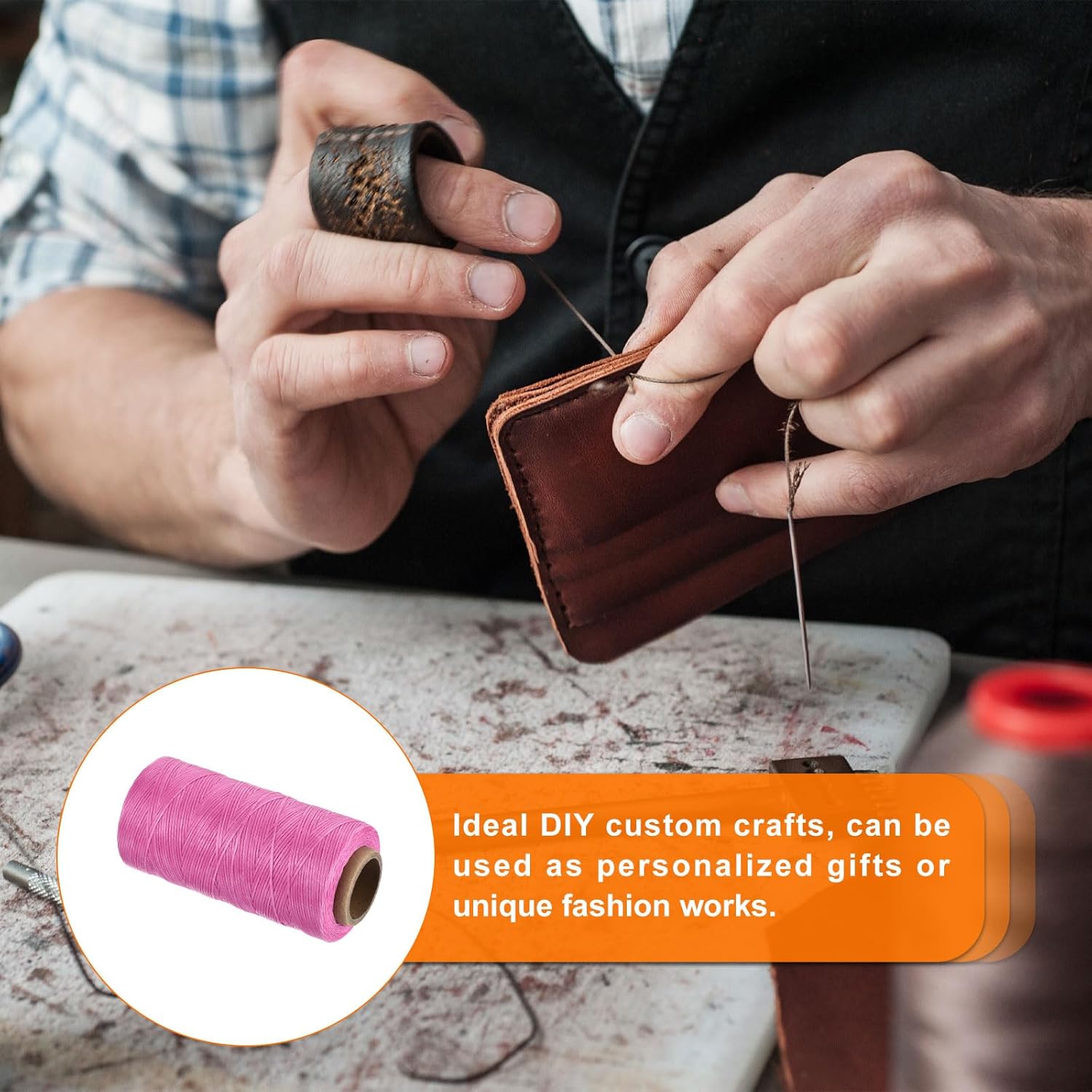 - 150D flat waxed thread is made of multiple polyester threads braided and covered with wax, which is tough and durable, not easy to break, and has high tensile strength; The waxed cord is soft and not easy to deform. The perforated sewing is smooth and flexible. It can withstand high temperatures and is easy to seal, cut, knot, and sew; it can be used for most leather DIY projects; Rich in colors, made of braided polyester, the thread is lightly waxed and coated, waterproof and non-fad