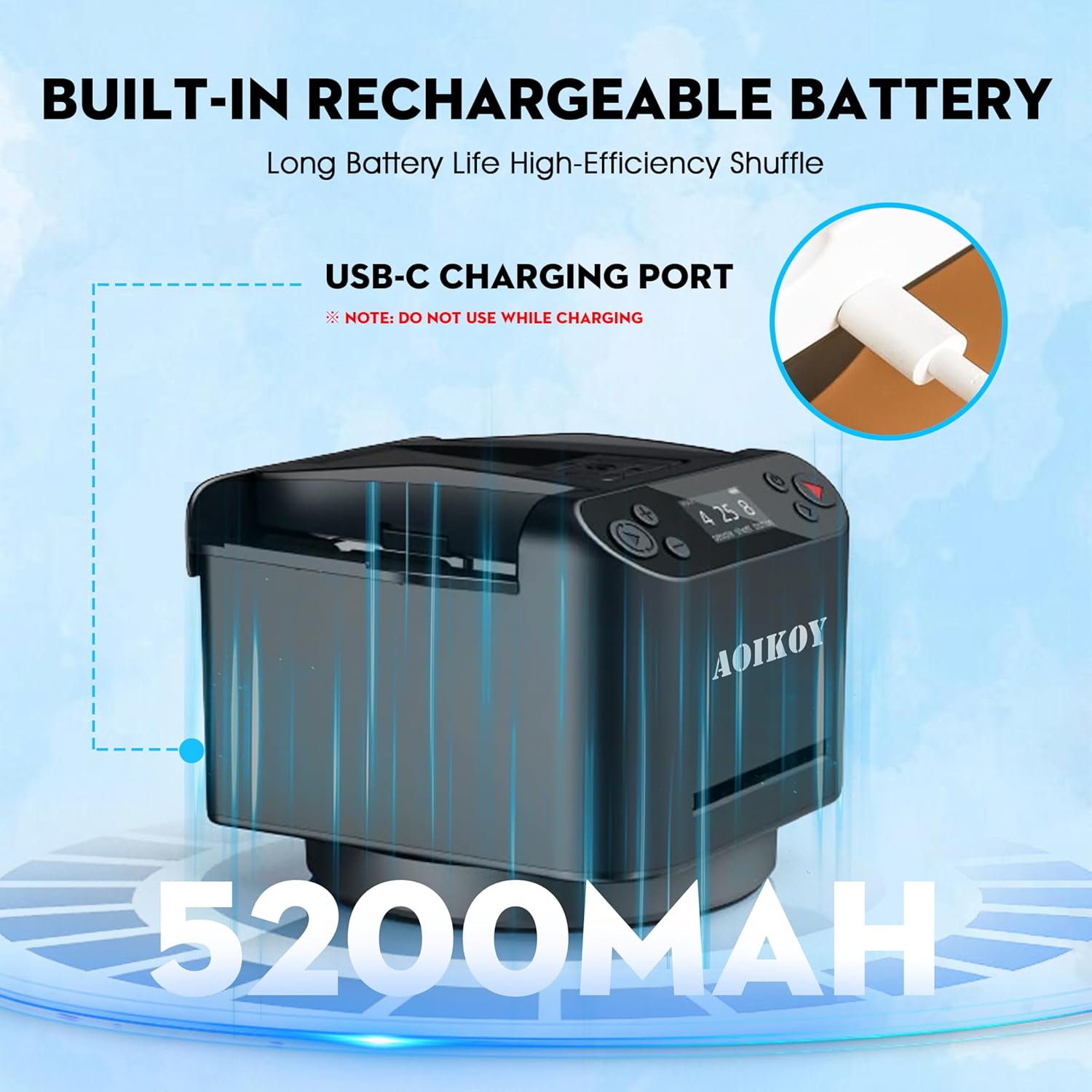 - 【Rechargeable & Portable】 Planning a weekend getaway or camping trip with friends? Bring the fun with you! Thanks to the 5000mAh rechargeable battery, this card shuffler dealer keeps the games going for up to 6 hours on a single charge. Compact and lightweight, it fits effortlessly into your backpack or travel bag, ensuring you’re ready for impromptu game nights anywhere—be it a cozy cabin or a bustling family barbecue. Size: 12.7×16.2×11.7cm Weight: 860g