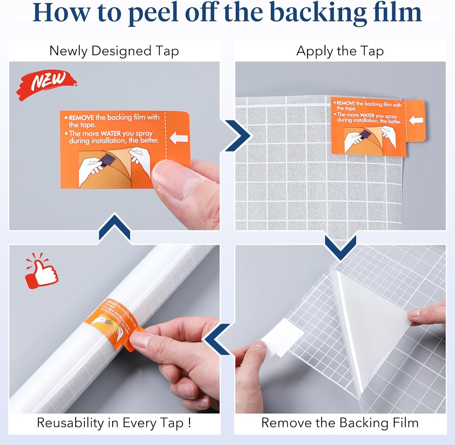 - Easy to Cut and Install: The window cling privacy film features a gridline design on the back, allowing for precise measurements and effortless cutting. Its static cling design adheres securely to smooth, flat glass surfaces with just water