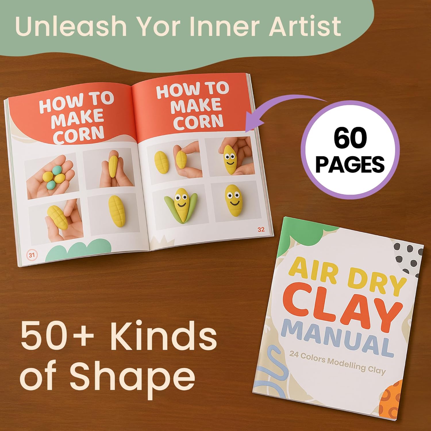 - COMPLETE AIR DRY CLAY KIT: This all-in-one air dry clay kit includes 24 vibrant colors, 8 sculpting tools, and a 60-page tutorial booklet. Perfect as an arts and crafts gift set for kids, adults, and beginners alike.