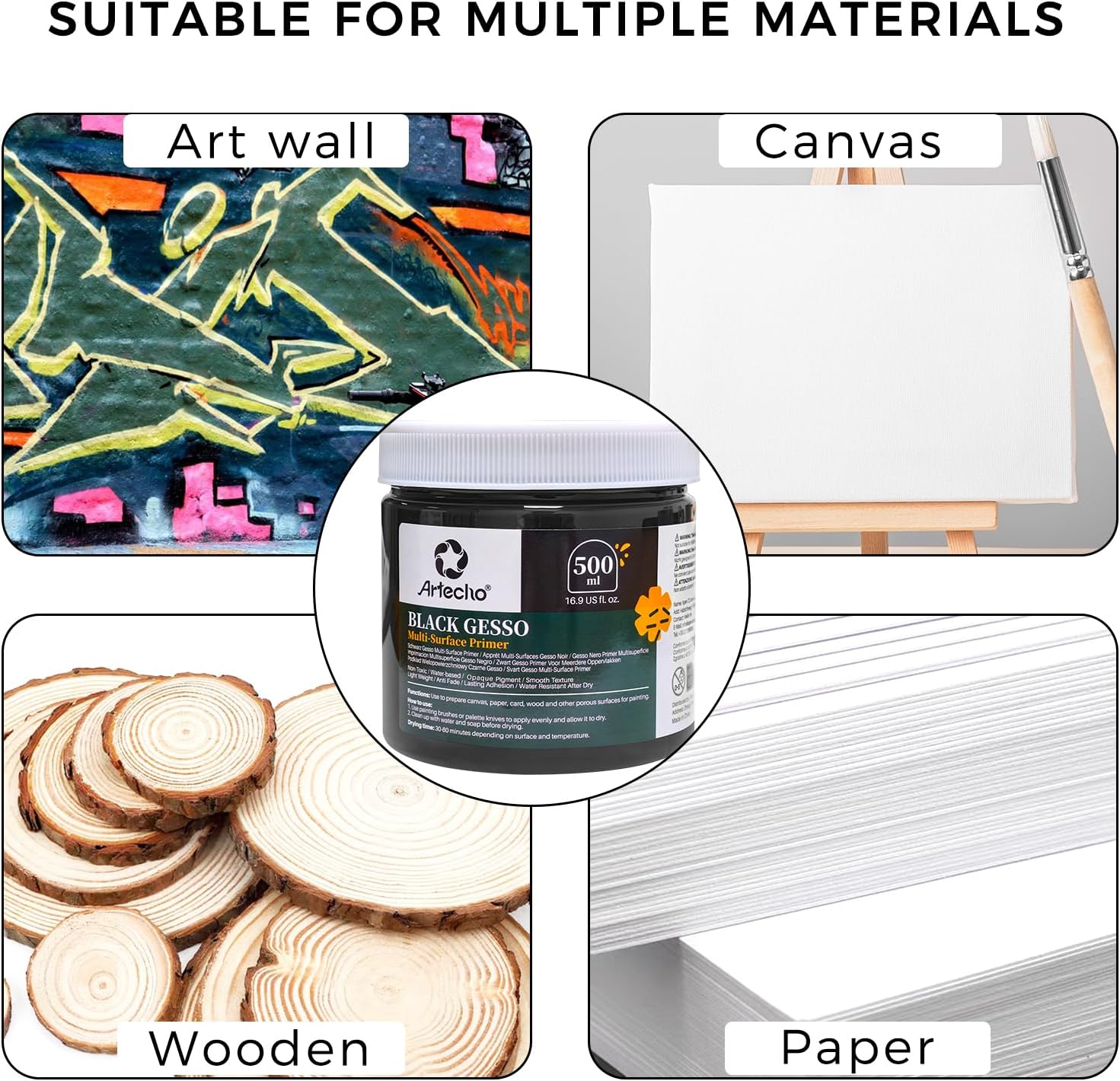 Artecho Black Gesso 16.9oz / 500ml, Gesso Primer for Acrylic Painting