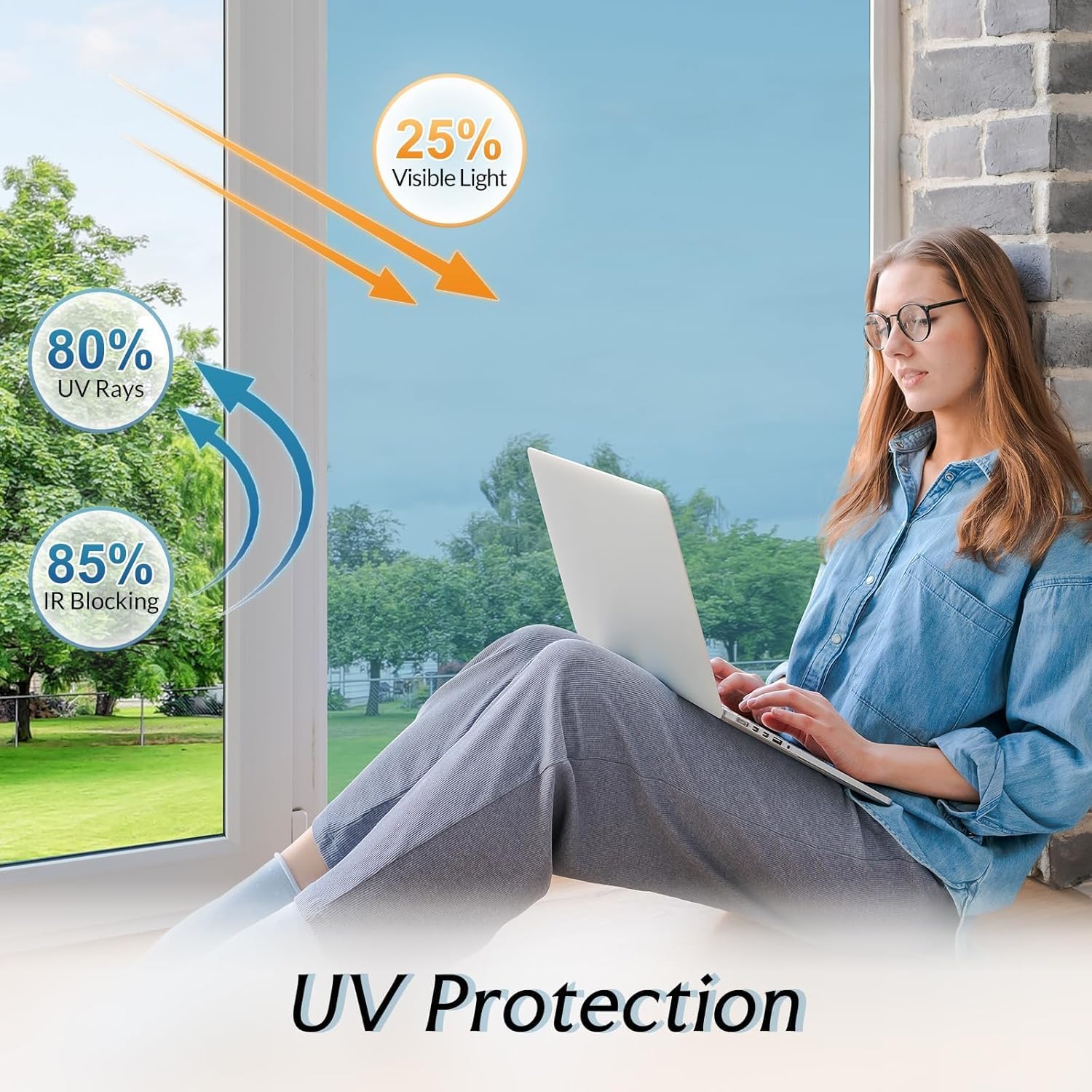 - Superior UV Defense: This home window tint blocks 80% of UV rays and 85% of IR rays, preventing furniture, flooring, and artwork from fading. It also enhances comfort by minimizing glare, ensuring a clear view, and creating a more pleasant living environment