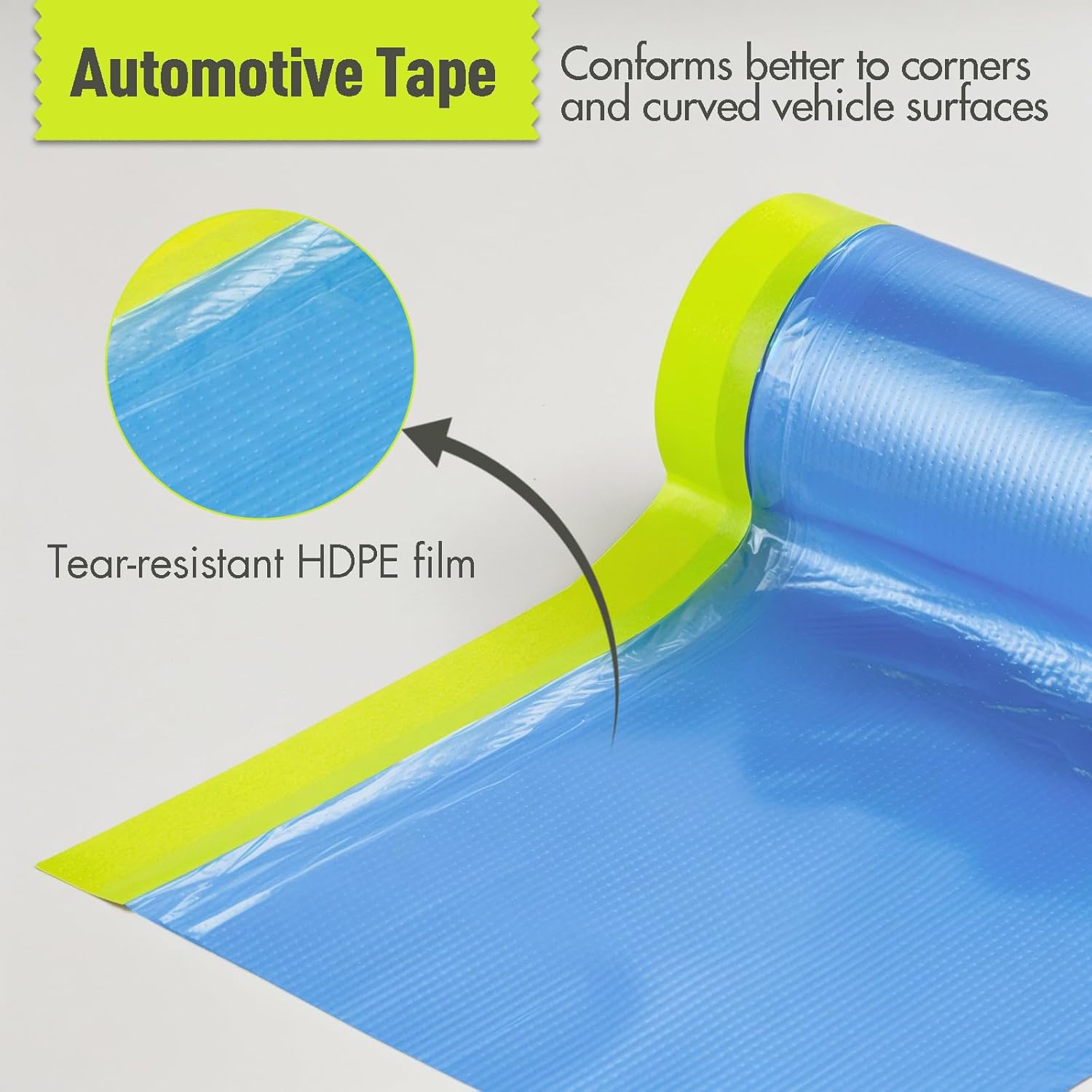 - 【High-temperature & Tear Resistant】Made with natural rubber based automotive masking tape and tear resistant HDPE masking film, it withstands high temperatures up to 230°F for half an hour, so it's great for automotive car refinishing protection.