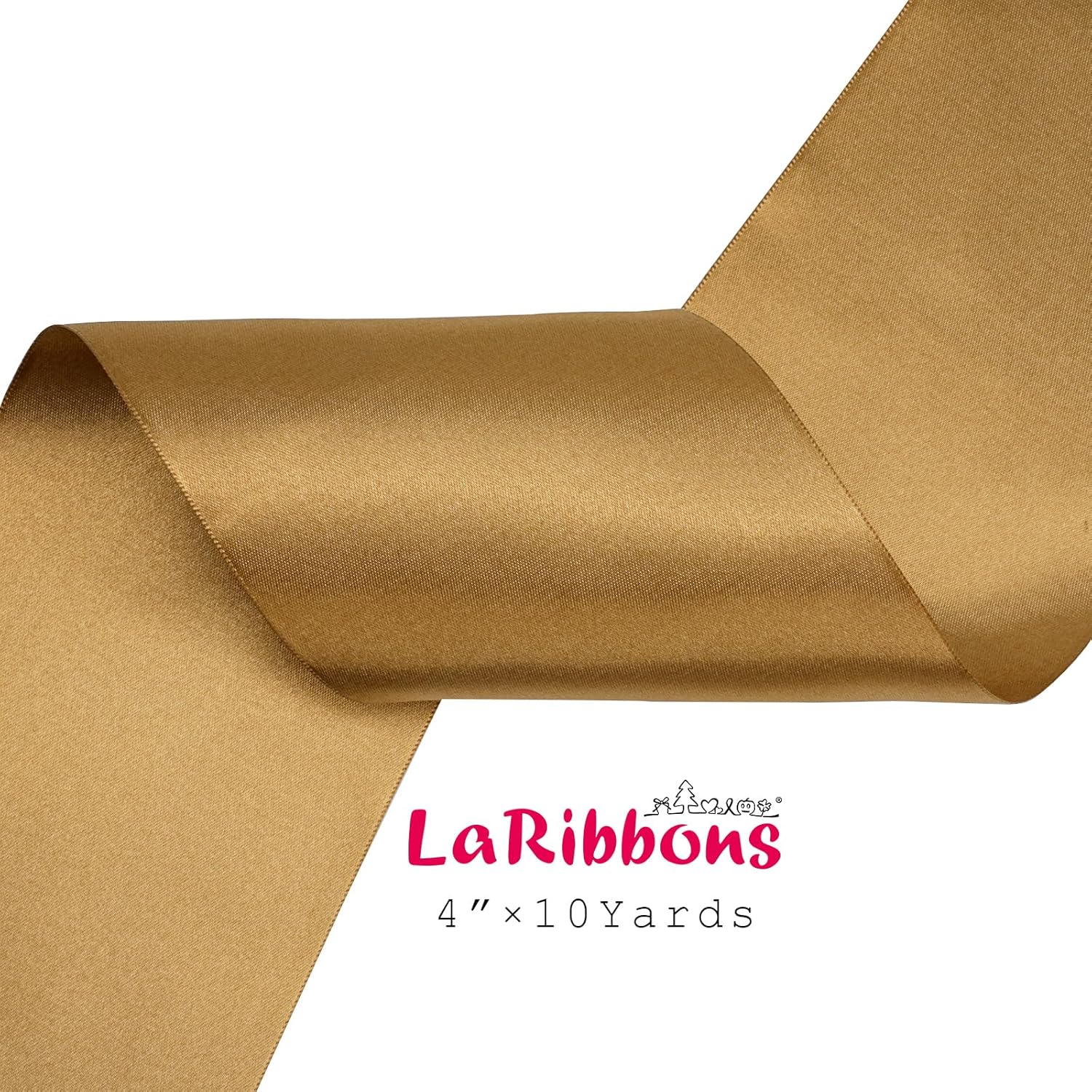 LaRibbons Pale Gold Satin Ribbon 4 Inch 10 Yards Double Faced Luxury Pale Gold Silk Ribbon for Gift Wrapping Flower Bouquets Bow Christmas Wedding Party Decoration