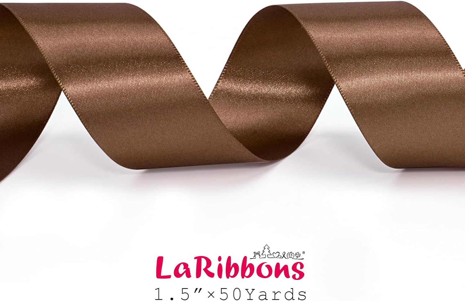 LaRibbons Brown Satin Ribbon 1 1/2 Inch 50 Yards Thin Luxury Double Faced Mocha Mousse Silk Ribbon for Flower Bouquet Crafts Gift Wrapping Wedding Decoration