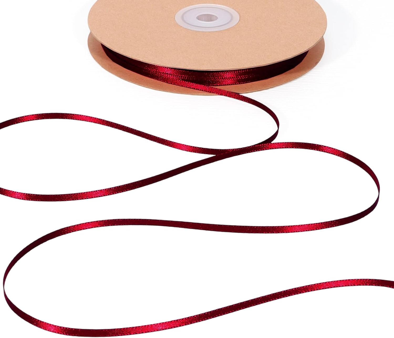 LaRibbons Burgundy Satin Ribbon 1/8 Inch 100 Yards Luxury Double Faced Red Silk Ribbon for Flower Bouquet Crafts Gift Wrapping Wedding Bow Christmas Decoration
