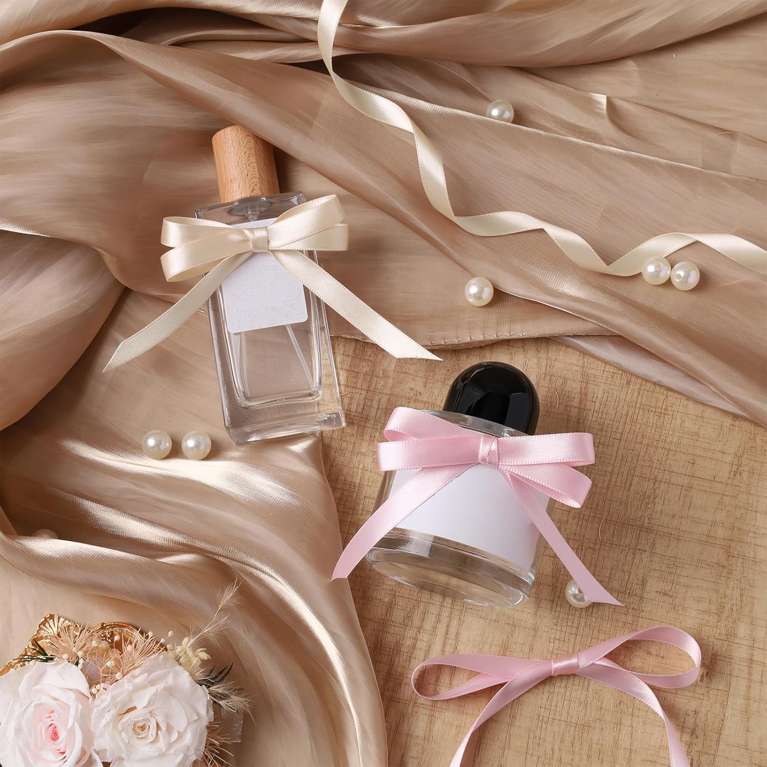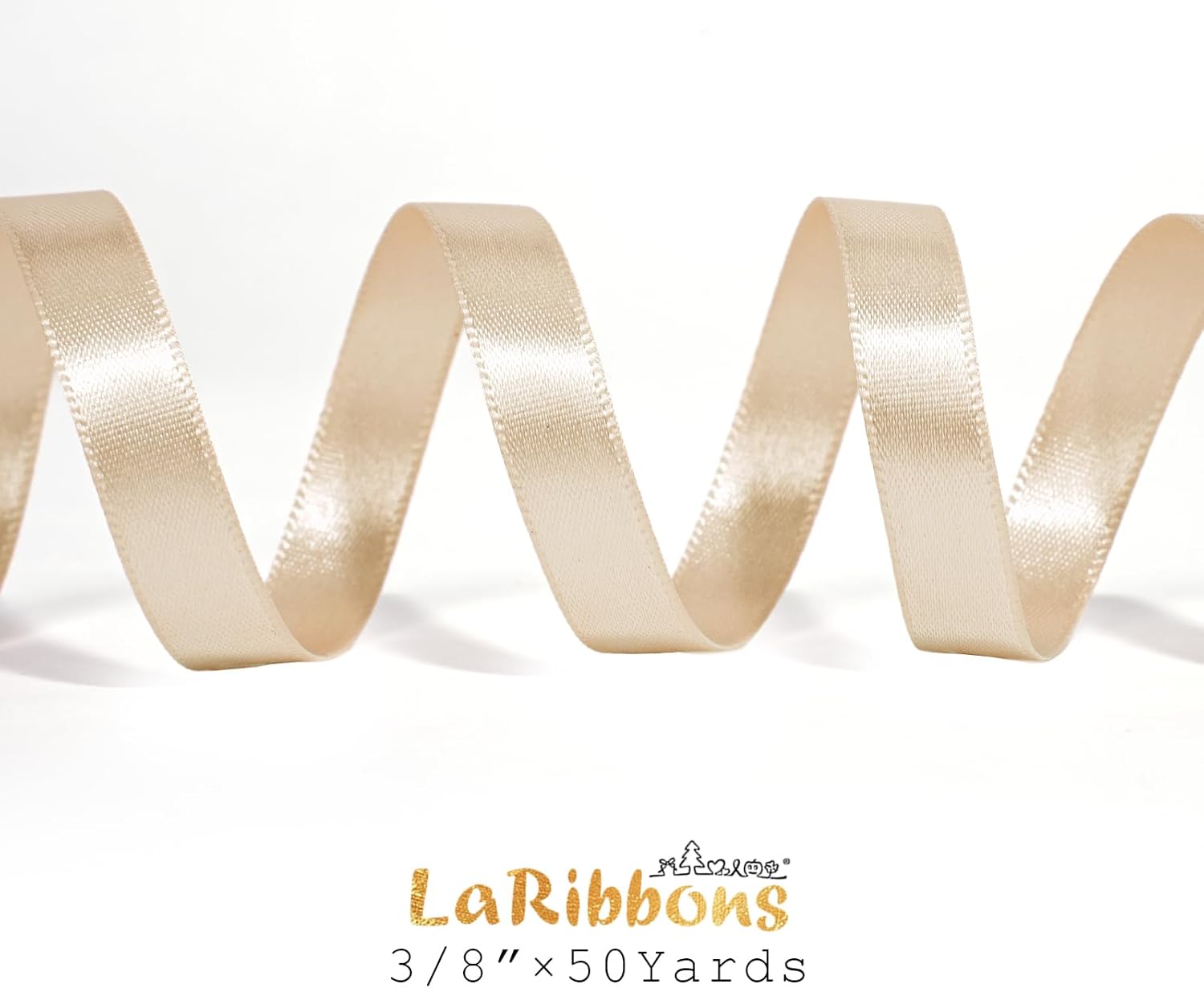 LaRibbons Nude Satin Ribbon 3/8 Inch 50 Yards Thin Luxury Double Faced Ivory Silk Ribbon for Flower Bouquet Crafts Gift Wrapping Wedding Bow Christmas Decoration