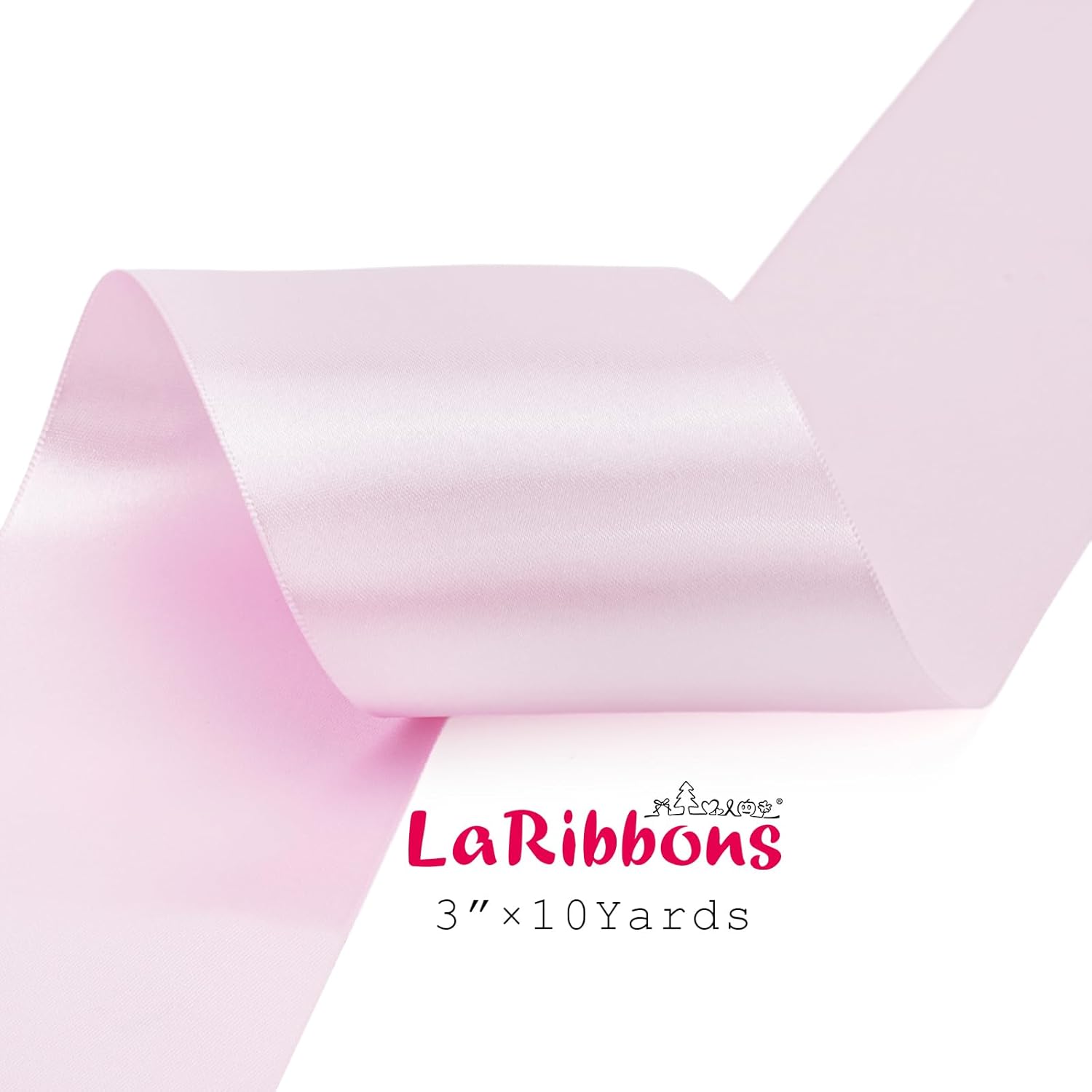 LaRibbons Light Pink Satin Ribbon 3 Inch 10 Yards Double Faced Luxury Light Pink Silk Ribbon for Gift Wrapping Flower Bouquets Bow Christmas Wedding Party Decoration
