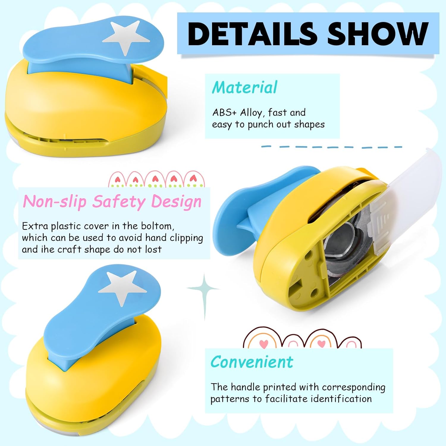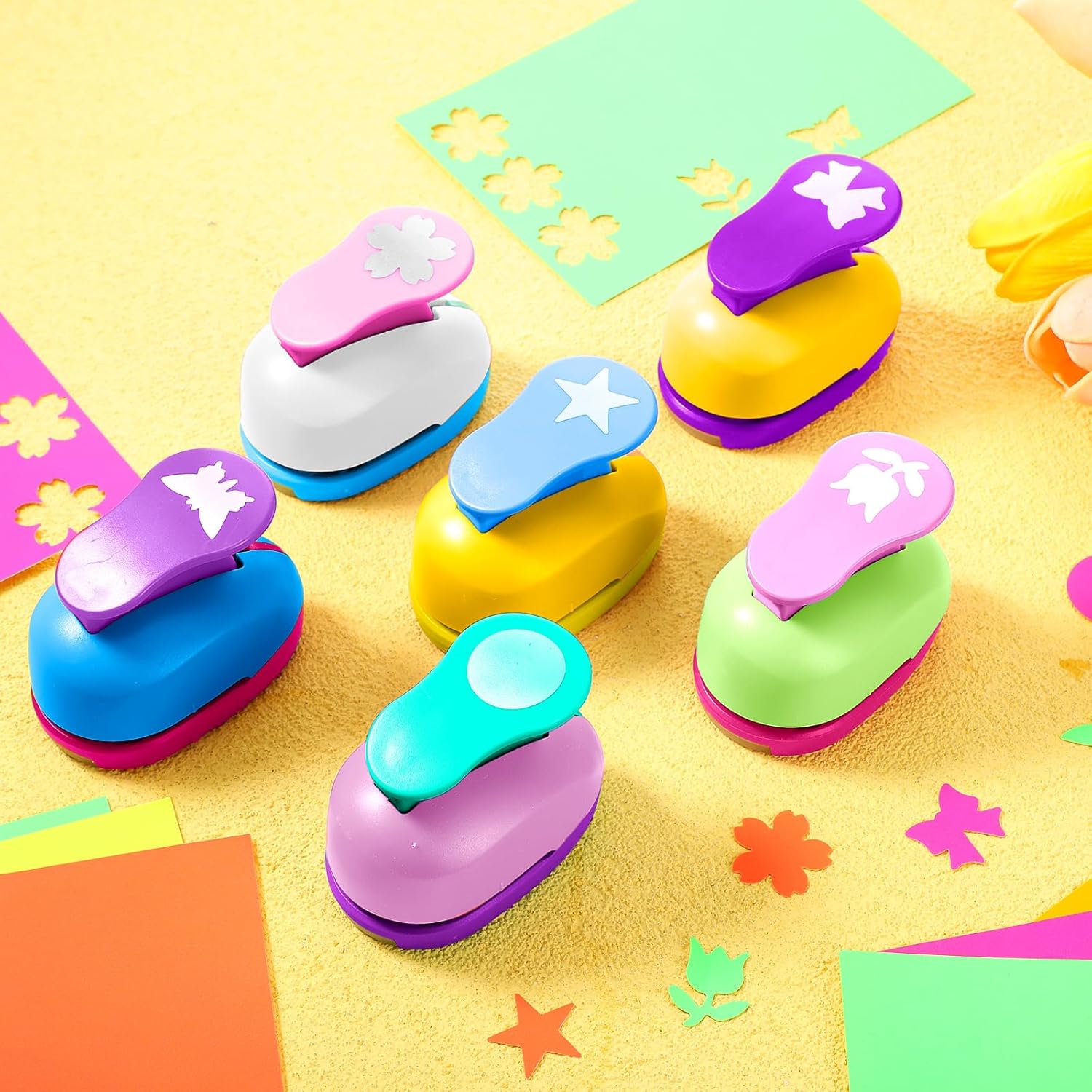 - Quantity: comes with 6 pieces craft paper punchers in 6 different styles and 10 pieces colorful craft sticker paper