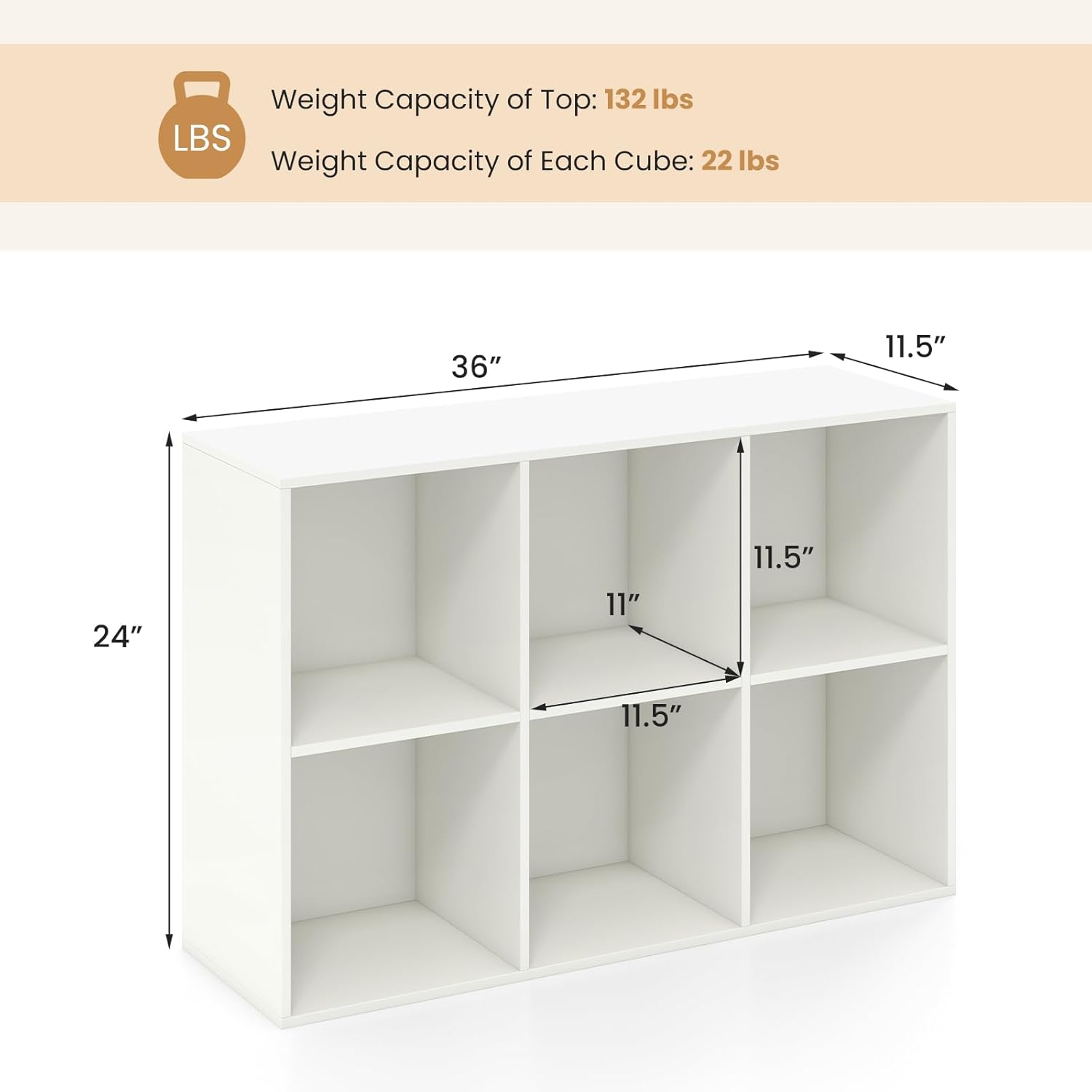 - [Generous Storage Capacity]: This 6-cube bookcase offers a spacious top surface and 6 large storage cubes, each measuring 11.5" x 11" x 11.5", providing plenty of space for books, CDs, decorations, and more. It is also compatible with storage bins for a tidy and organized appearance.