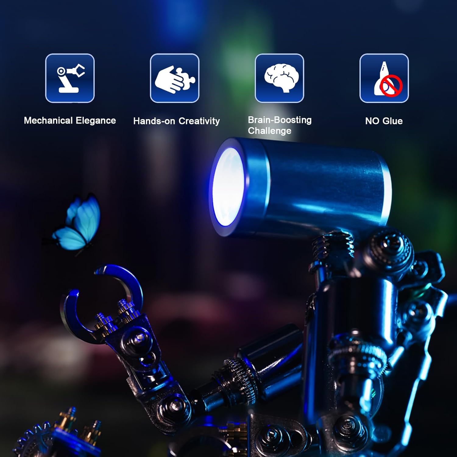- PREMIUM BUILD: 299-piece metal puzzle kit featuring intricate mechanical details and chrome-finish parts for a realistic robotic appearance