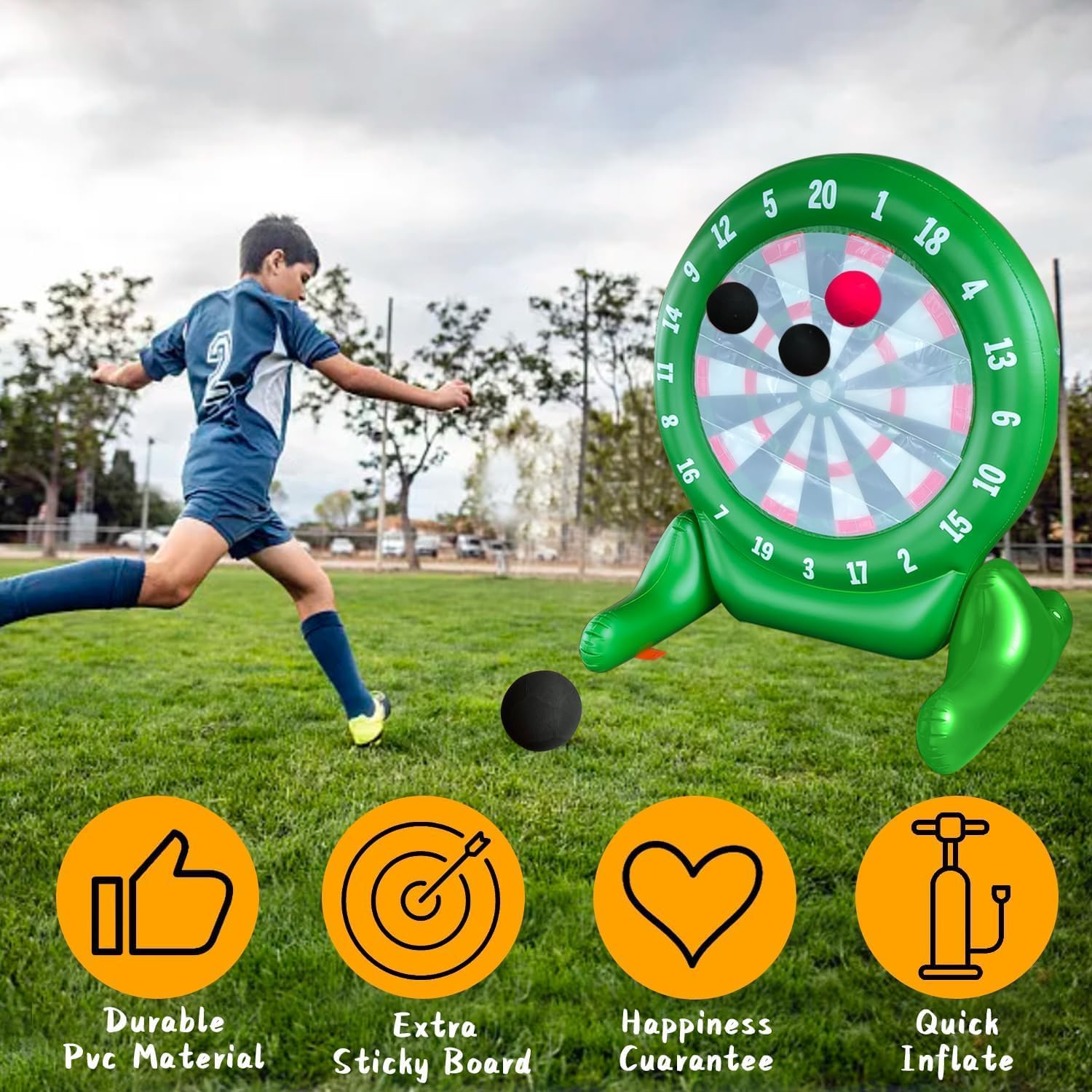 - 9.8ft Inflatable Giant Dartboard - The inflatable dart board contains 4 balls . This ball has a velcro on it. When you kick hard at the target, it will stick to the dart board. Each position corresponds to a different score, which can easily help track your score.