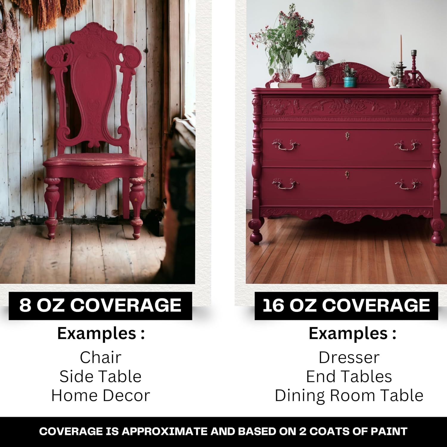 - Superior Coverage: Our chalk style paint provides superior coverage allowing for a smooth or textured finish with fewer coats per square foot. Our clay chalk paint consistency has less drippage than regular paint and rolls or brushes on generously. We recommended using our Dream Coat sealant to protect against unwanted fingerprints and scrapes. Use our coverage guide to determine how much paint is needed for your project.