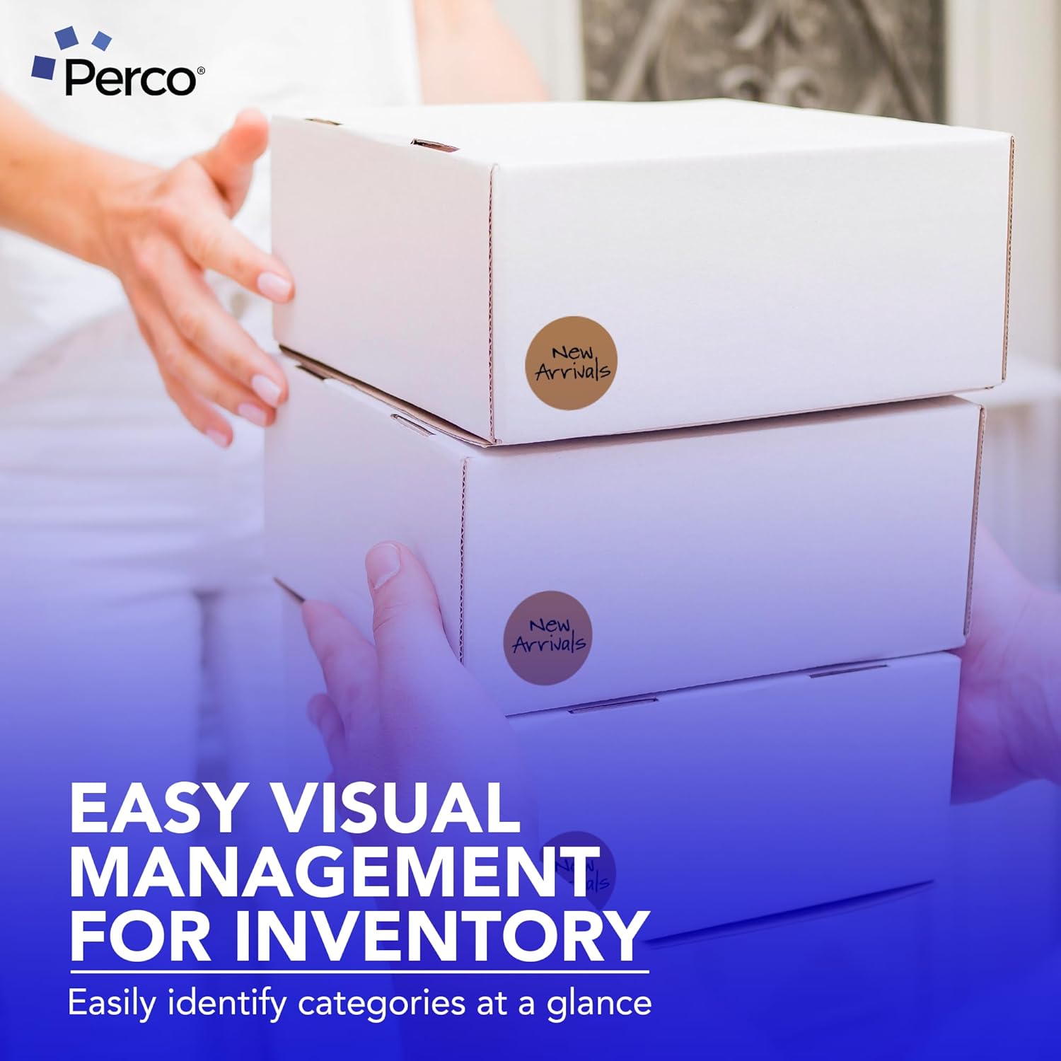 Perco Kraft Brown 3-Inch Round Circle Dot Sticker Labels - Multi-Roll Pack (3 Rolls, 500 Labels Each) - Permanent Adhesive, Natural, Cardboard-Like Surface - Perforated for Easy Use - Made in USA