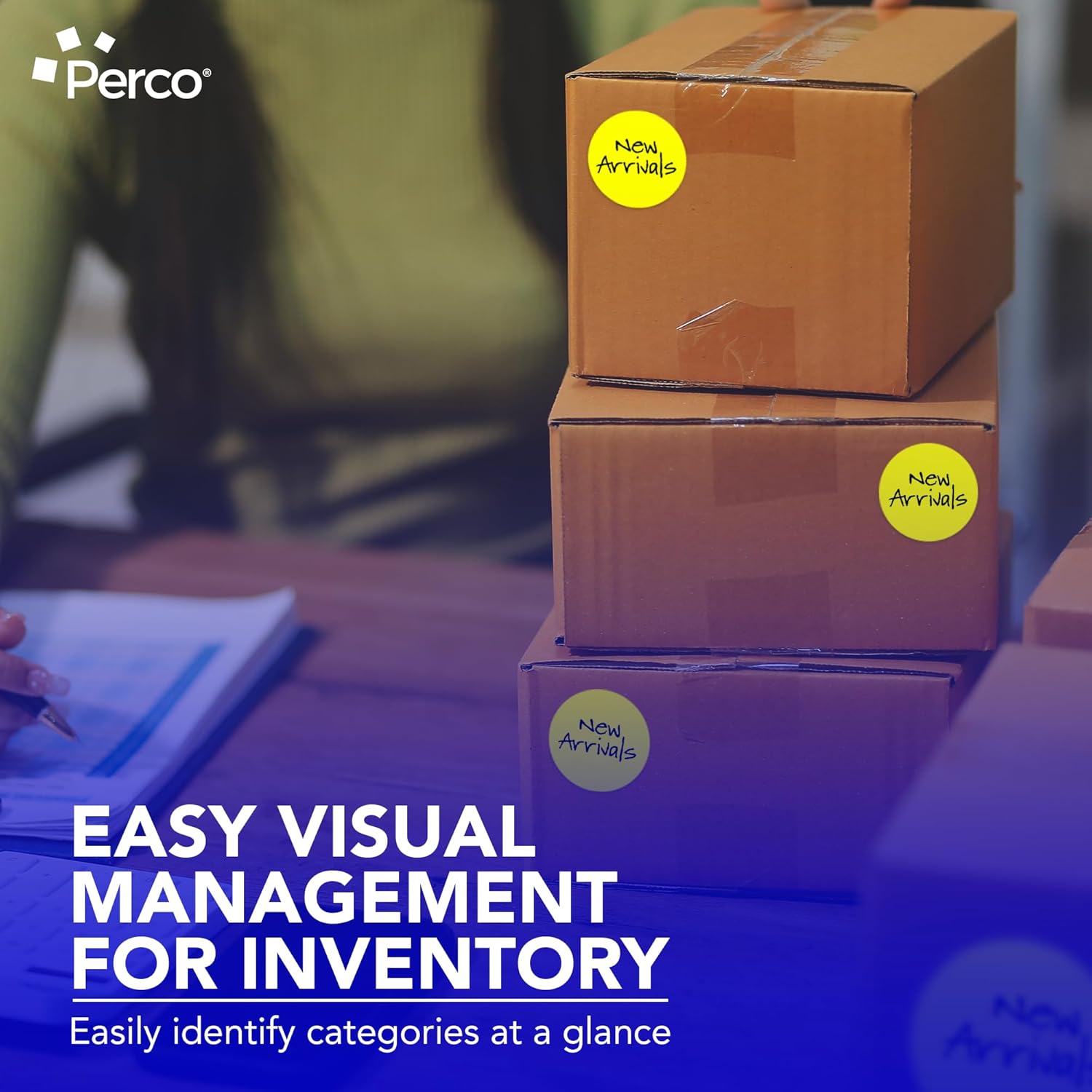 Perco Fluorescent Yellow 3-Inch Round Circle Dot Sticker Labels - Multi-Roll Pack (3 Rolls, 500 Labels Each) - Permanent Adhesive, Vibrant Colors, Strong Hold - Perforated for Easy Use - Made in USA