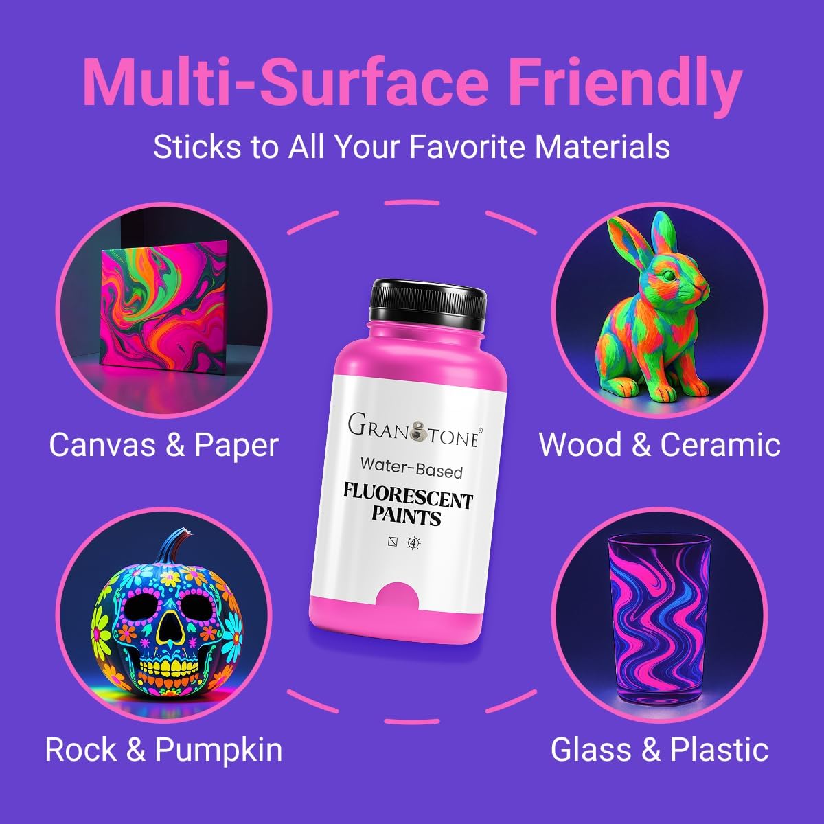 GRANOTONE Neon Fluorescent Acrylic Paint Set - 6 Colors, 4 oz Each | Glows in Black Light | Non-Toxic & Vibrant Paint | Ideal for Art, Crafts, Kids, & Hobbyists | Made in India