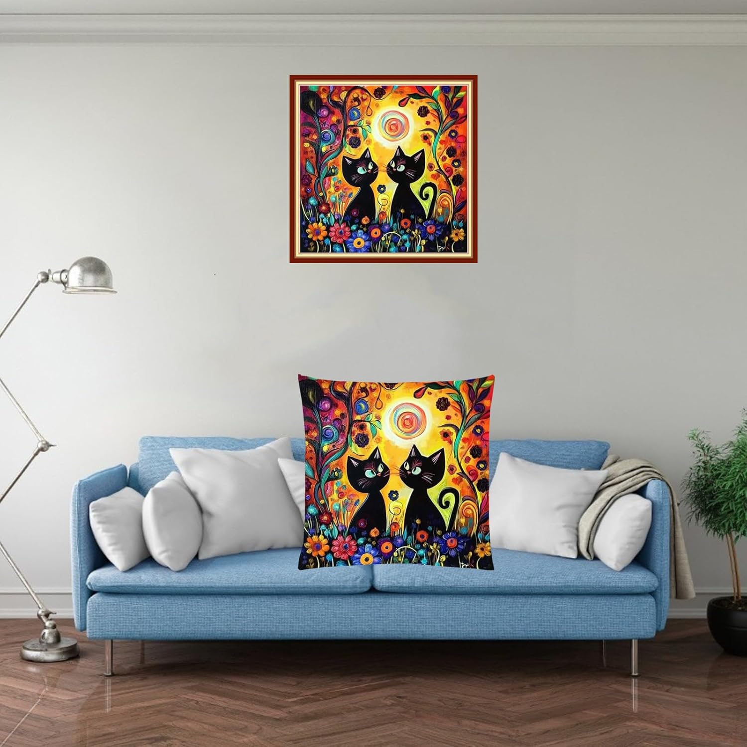Fanxvivy Stamped Cross Stitch Kits for Adults Beginners Pillow Needlepoint Kit with Embroidery Pattern Needlework Kit Prestamped Stitches Kit 11CT Cross Stitching-Cats in The Garden 18x18 inch