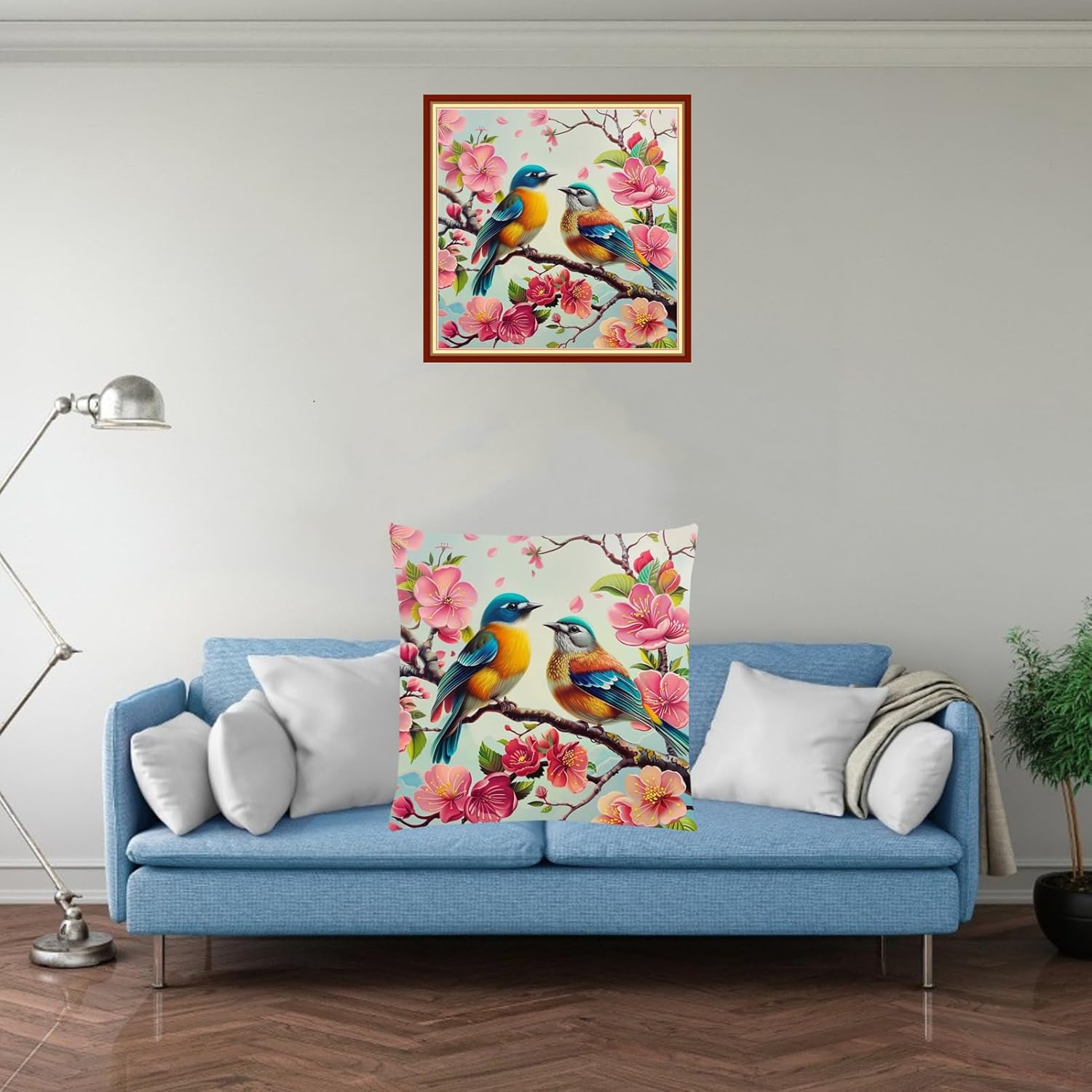 Stamped Cross Stitch Kits for Adults Beginners Pillow Needlepoint Kit with Embroidery Pattern Needlework Kit Prestamped Stitches Kit 11CT Cross Stitching-Peach Blossom Bird 18x18 inch