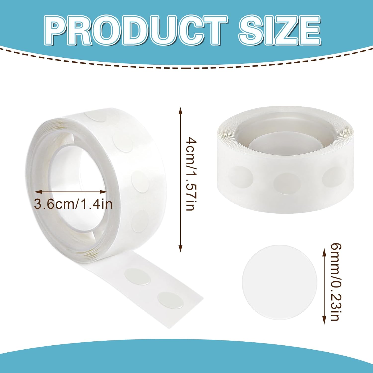 - Size and Material: Diameter: 6 mm/0.24 inch, and double sided adhesive dots are made of premium solid adhesive, no trace left, easy to take out after use, and will not damage the surface of the object