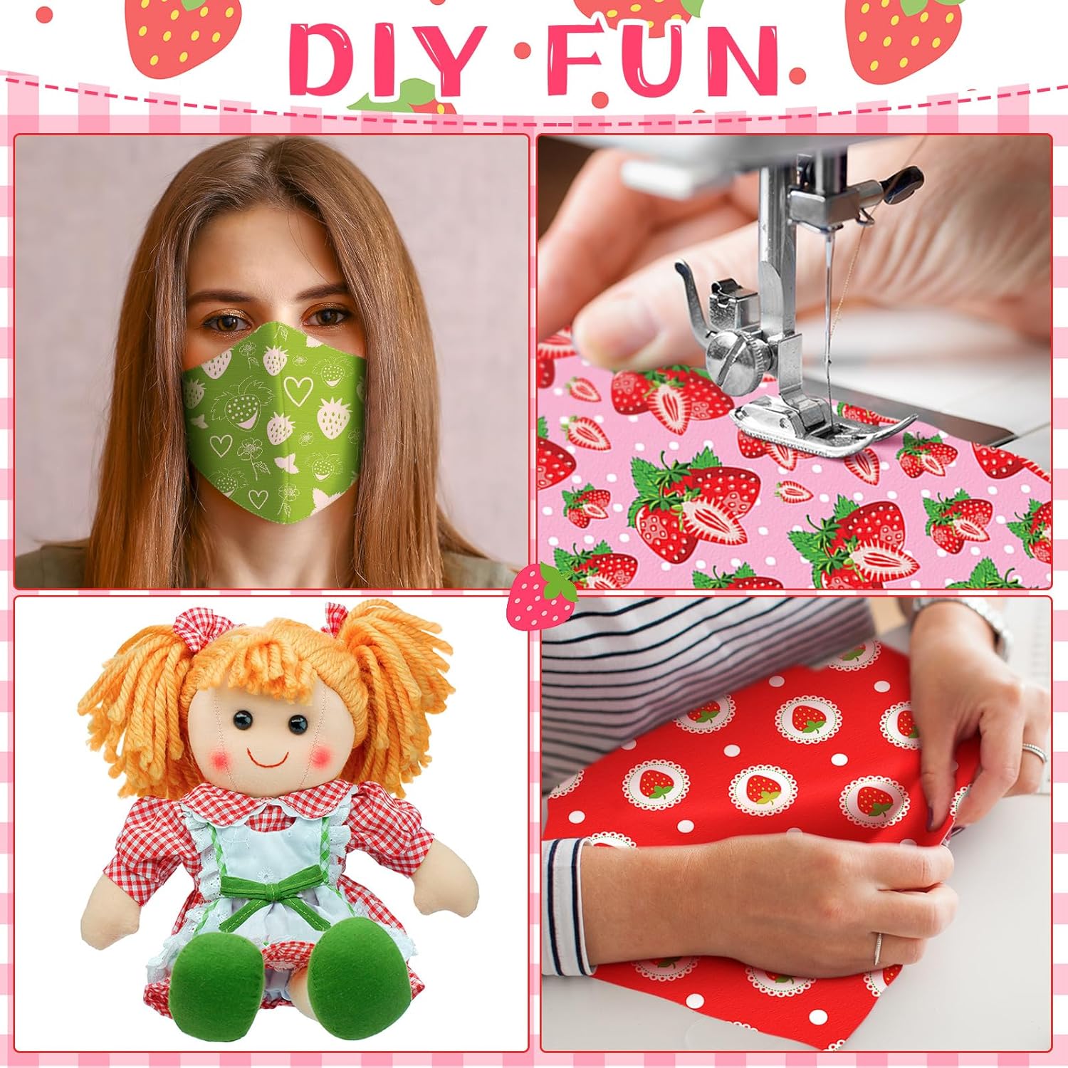 - Multifunctional Fabric: our strawberries fabric strips offer more than just quilting possibilities; You can slice them up for patchwork on small purses, pillow covers, quilting patchwork, table cloth, storage bags; They also serve as excellent embellishments for scrapbooks, doll clothes, tablecloths, cushion covers, and more; The possibilities are as wide as your imagination